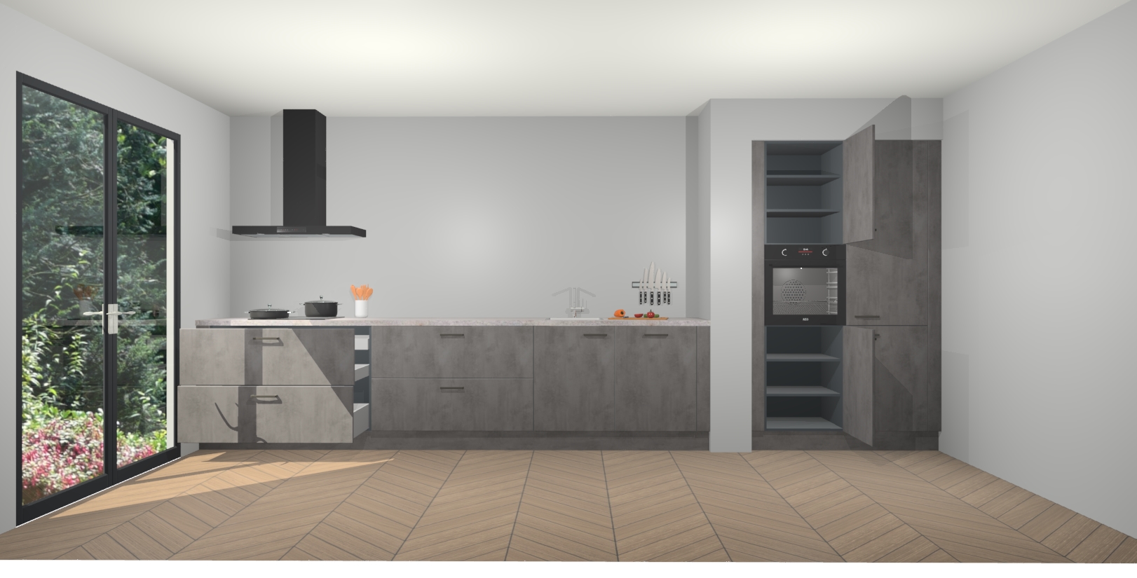 Met de Beton Antraciet keuken Calgary Maakt u van uw keuken het pronkstuk van uw huis. Stijlvol en toch praktisch, de nieuwste look voor wie meer waarde en charme aan zijn huis wil toevoegen. Met prachtige handgrepen die zich lenen voor een klassieke stijlbron, zal u niet teleurgesteld zijn in het resultaat. De soft-close deurscharnieren geven een gevoel van luxe omdat ze zachtjes bewegen zonder storende of krakende geluiden te veroorzaken.