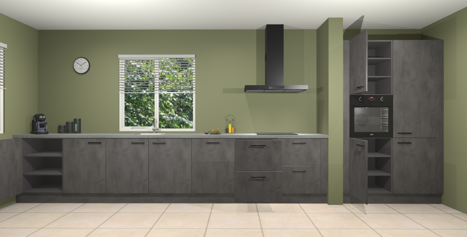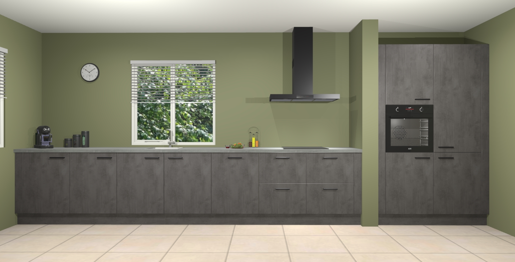 Maak kennis met de Beton antraciet keuken Elzas - de perfecte aanvulling voor uw moderne keuken! Ervaar tijdloos design, elegantie en een chique uitstraling met onze handgrepen, soft-close deuren en veel opbergruimte. Dit alles wordt aangeboden tegen een vaste lage prijs voor ongeëvenaarde Duitse keukenkwaliteit!