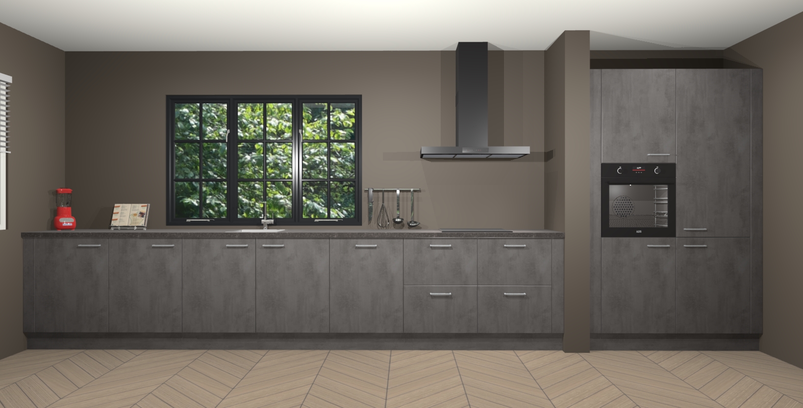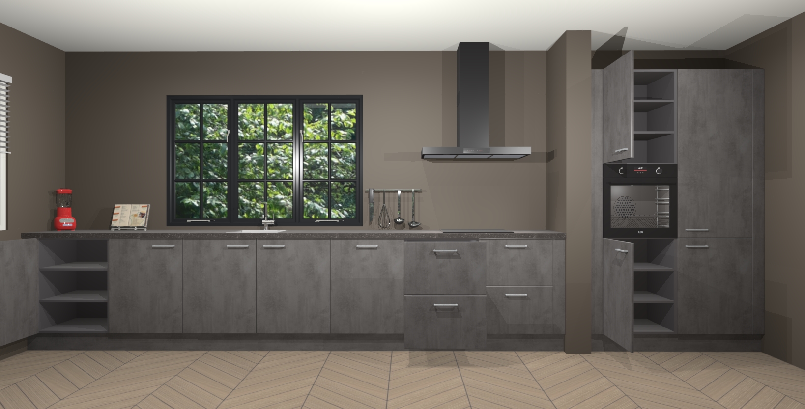 Met de Beton antraciet keuken Elzas Maakt u van uw keuken het pronkstuk van uw huis. Stijlvol en toch praktisch, de nieuwste look voor wie meer waarde en charme aan zijn huis wil toevoegen. Met prachtige handgrepen die zich lenen voor een klassieke stijlbron, zal u niet teleurgesteld zijn in het resultaat. De soft-close deurscharnieren geven een gevoel van luxe omdat ze zachtjes bewegen zonder storende of krakende geluiden te veroorzaken.