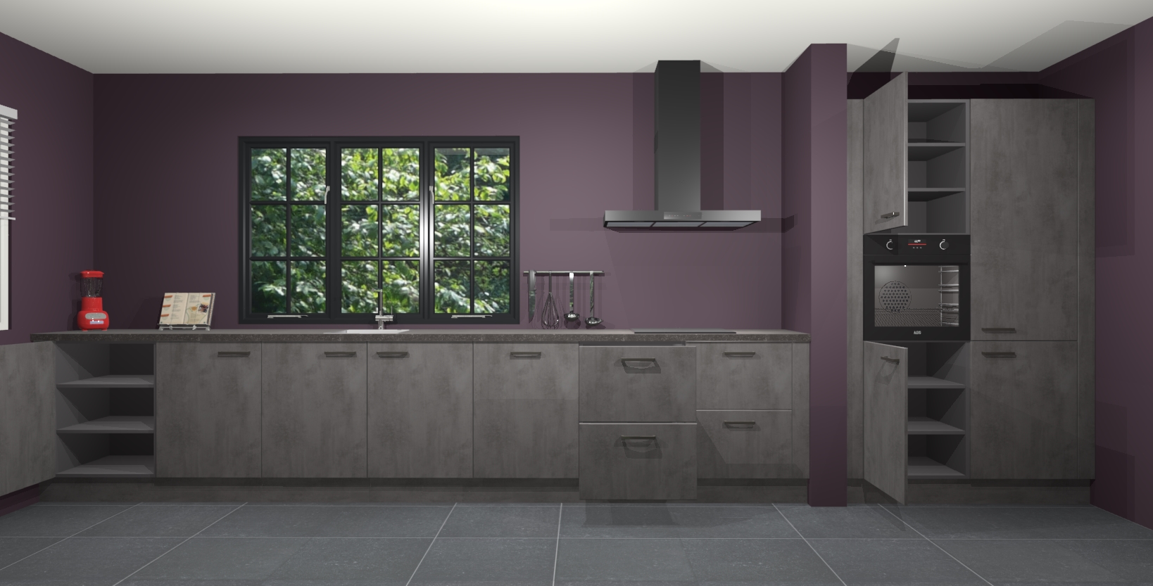 Met de Beton antraciet keuken Elzas Maakt u van uw keuken het pronkstuk van uw huis. Stijlvol en toch praktisch, de nieuwste look voor wie meer waarde en charme aan zijn huis wil toevoegen. Met prachtige handgrepen die zich lenen voor een klassieke stijlbron, zal u niet teleurgesteld zijn in het resultaat. De soft-close deurscharnieren geven een gevoel van luxe omdat ze zachtjes bewegen zonder storende of krakende geluiden te veroorzaken.