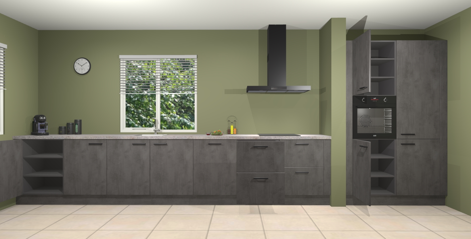 Maak kennis met de Beton antraciet keuken Elzas - de perfecte aanvulling voor uw moderne keuken! Ervaar tijdloos design, elegantie en een chique uitstraling met onze handgrepen, soft-close deuren en veel opbergruimte. Dit alles wordt aangeboden tegen een vaste lage prijs voor ongeëvenaarde Duitse keukenkwaliteit!