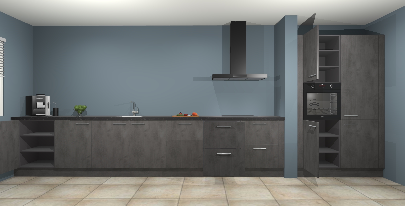 Met de Beton antraciet keuken Elzas Maakt u van uw keuken het pronkstuk van uw huis. Stijlvol en toch praktisch, de nieuwste look voor wie meer waarde en charme aan zijn huis wil toevoegen. Met prachtige handgrepen die zich lenen voor een klassieke stijlbron, zal u niet teleurgesteld zijn in het resultaat. De soft-close deurscharnieren geven een gevoel van luxe omdat ze zachtjes bewegen zonder storende of krakende geluiden te veroorzaken.