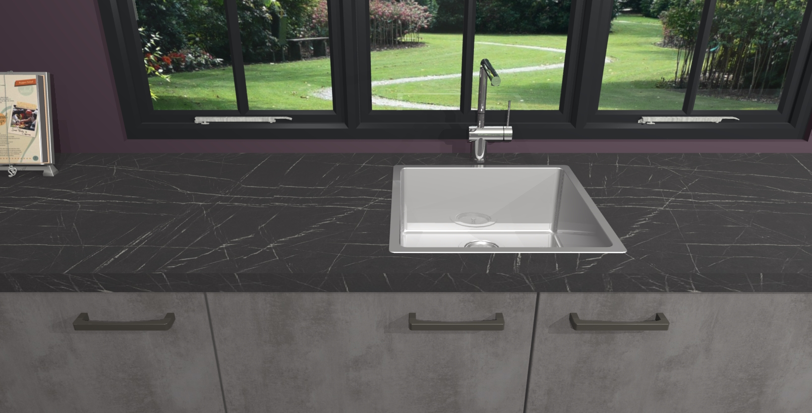 Met de Beton antraciet keuken Elzas Maakt u van uw keuken het pronkstuk van uw huis. Stijlvol en toch praktisch, de nieuwste look voor wie meer waarde en charme aan zijn huis wil toevoegen. Met prachtige handgrepen die zich lenen voor een klassieke stijlbron, zal u niet teleurgesteld zijn in het resultaat. De soft-close deurscharnieren geven een gevoel van luxe omdat ze zachtjes bewegen zonder storende of krakende geluiden te veroorzaken.