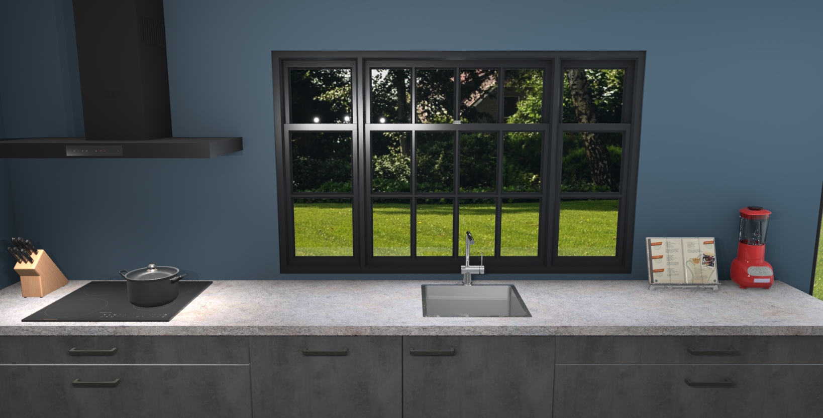 De softclose deuren openen en sluiten is ook heel eenvoudig - geniet van een moeiteloze keukenervaring, zelfs als er kinderen rondlopen. Voor extra gemak bij het plaatsen van uw bestelling bieden we ook een upgrade naar een kookplaat met geïntegreerde afzuiging.