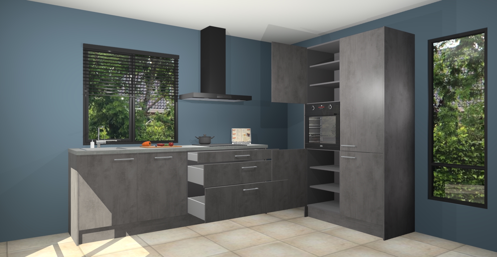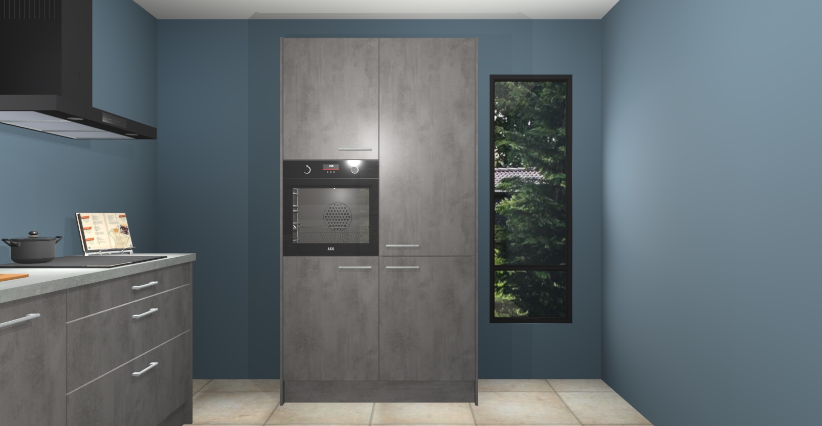 De setting is compleet gemaakt door de vijf inbouwapparaten: wanneer u gaat bestellen kunt u upgraden naar AEG-apparaten als oven, inductieplaat, afzuigkap, vaatwasser en koelkast. Kiest u voor onze Beton antraciet keuken Monaco, dan weet u zeker dat u te maken heeft met Duitse kwaliteit. Bovendien is er altijd sprake van een lage prijs en profiteren we aantrekkelijk leveringstermijn: die bedraagt slechts 7 weken ! Om het extra makkelijk te maken worden de keukenkasten reeds voorgemonteerd geleverd.