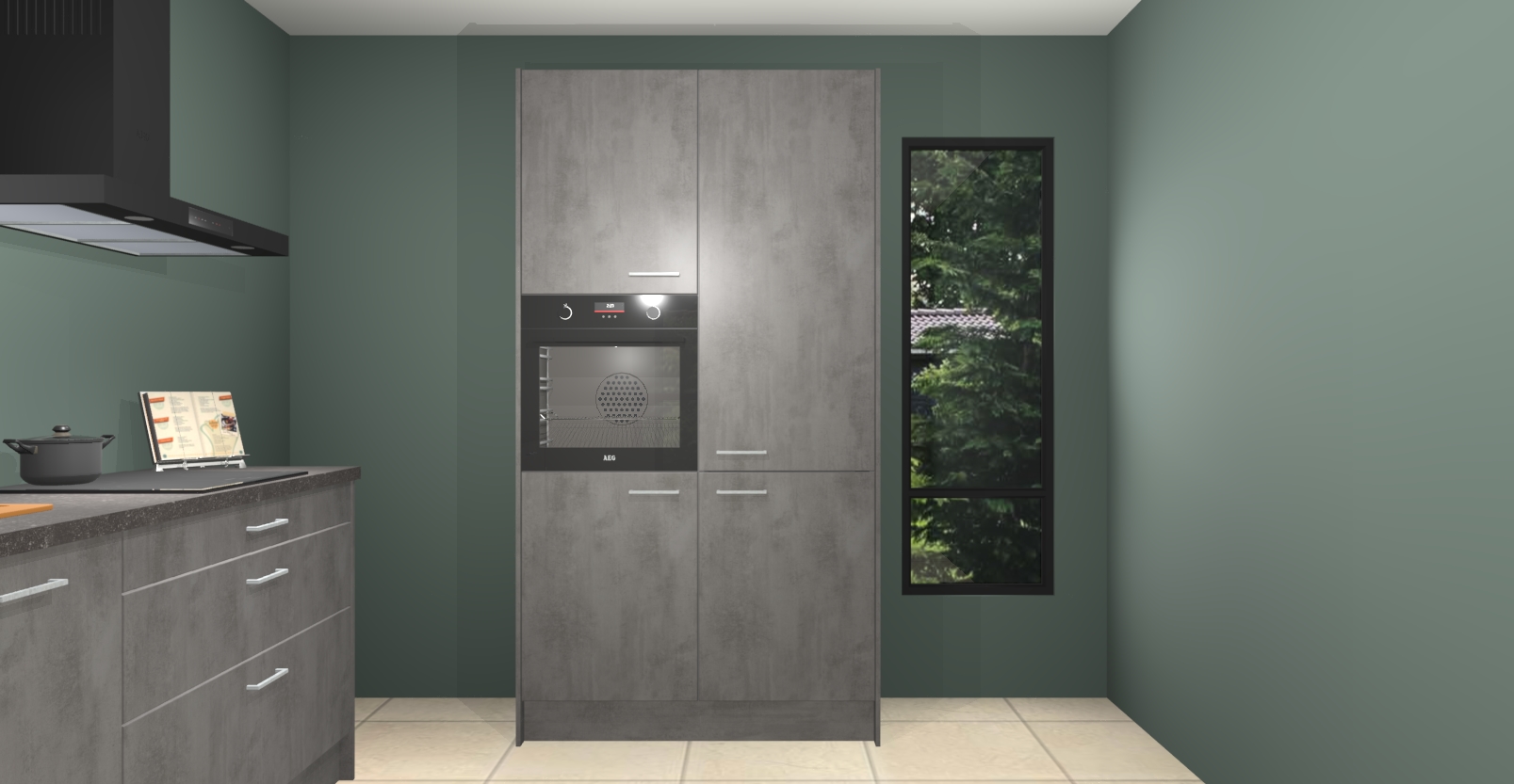 De setting is compleet gemaakt door de vijf inbouwapparaten: wanneer u gaat bestellen kunt u upgraden naar AEG-apparaten als oven, inductieplaat, afzuigkap, vaatwasser en koelkast. Kiest u voor onze Beton antraciet keuken Monaco, dan weet u zeker dat u te maken heeft met Duitse kwaliteit. Bovendien is er altijd sprake van een lage prijs en profiteren we aantrekkelijk leveringstermijn: die bedraagt slechts 7 weken ! Om het extra makkelijk te maken worden de keukenkasten reeds voorgemonteerd geleverd.