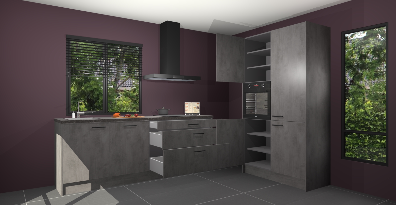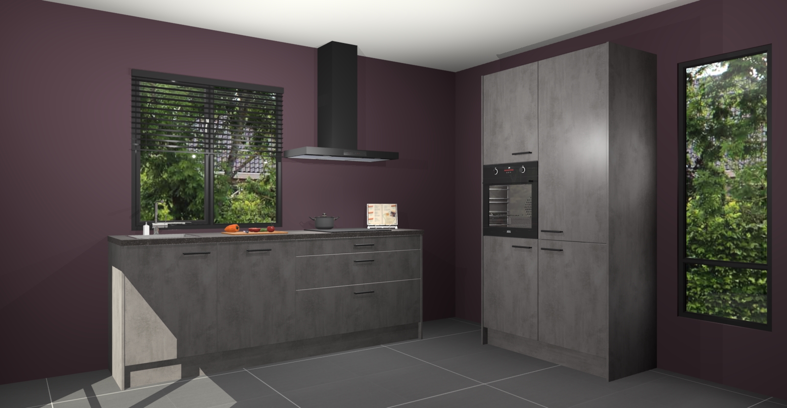 De setting is compleet gemaakt door de vijf inbouwapparaten: wanneer u gaat bestellen kunt u upgraden naar AEG-apparaten als oven, inductieplaat, afzuigkap, vaatwasser en koelkast. Kiest u voor onze Beton antraciet keuken Monaco, dan weet u zeker dat u te maken heeft met Duitse kwaliteit. Bovendien is er altijd sprake van een lage prijs en profiteren we aantrekkelijk leveringstermijn: die bedraagt slechts 7 weken ! Om het extra makkelijk te maken worden de keukenkasten reeds voorgemonteerd geleverd.