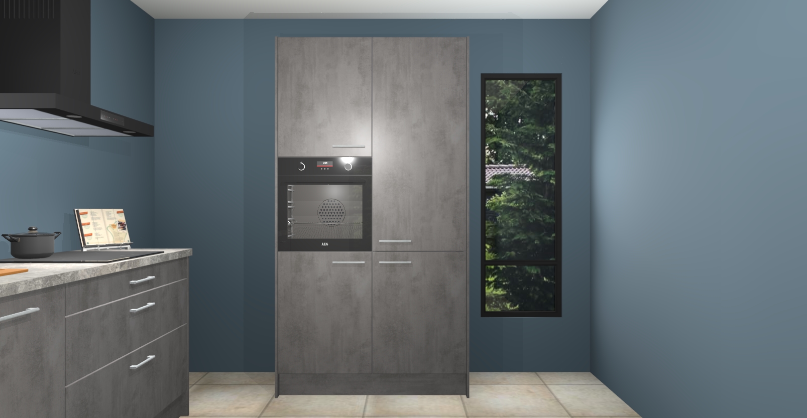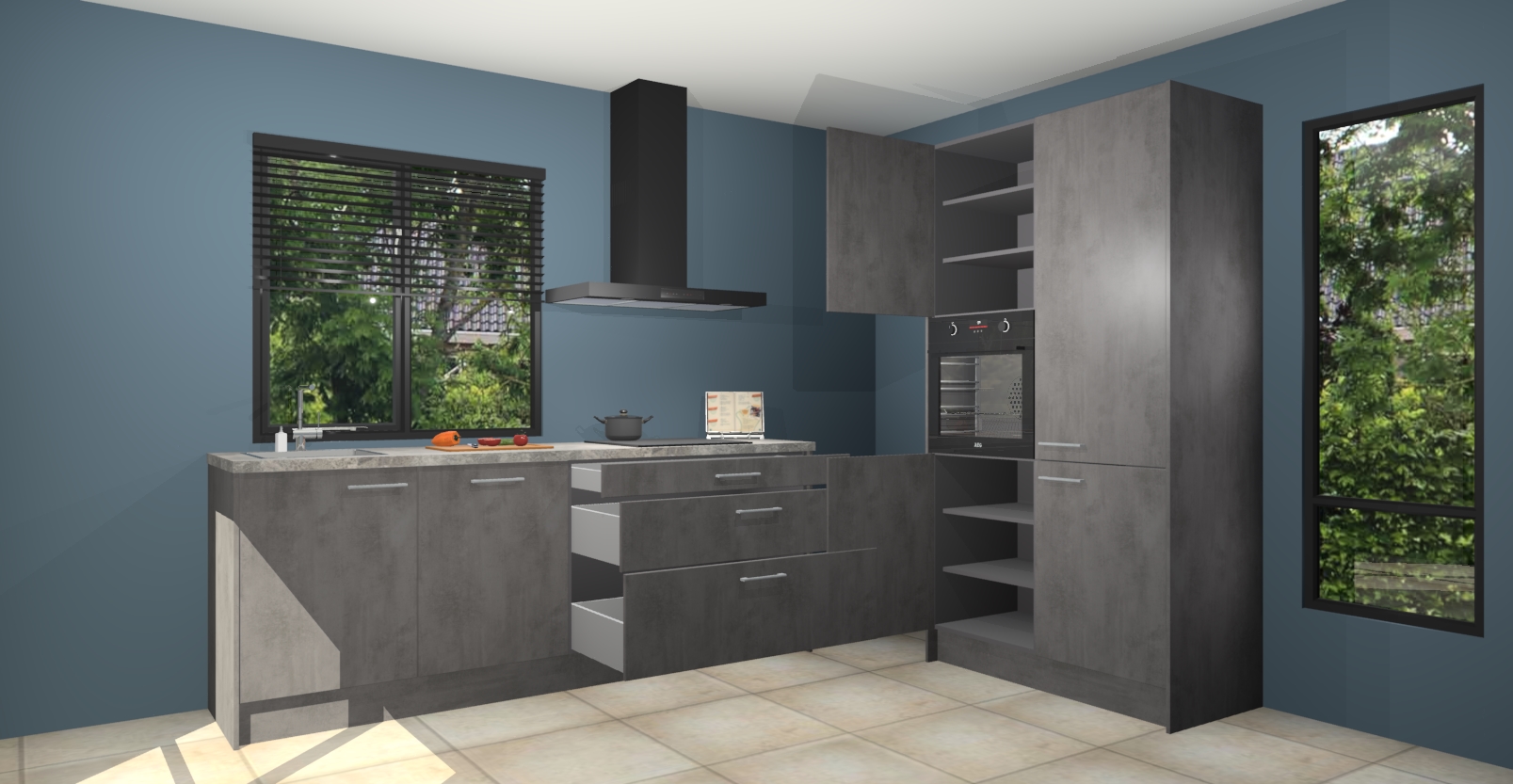 De setting is compleet gemaakt door de vijf inbouwapparaten: wanneer u gaat bestellen kunt u upgraden naar AEG-apparaten als oven, inductieplaat, afzuigkap, vaatwasser en koelkast. Kiest u voor onze Beton antraciet keuken Monaco, dan weet u zeker dat u te maken heeft met Duitse kwaliteit. Bovendien is er altijd sprake van een lage prijs en profiteren we aantrekkelijk leveringstermijn: die bedraagt slechts 7 weken ! Om het extra makkelijk te maken worden de keukenkasten reeds voorgemonteerd geleverd.
