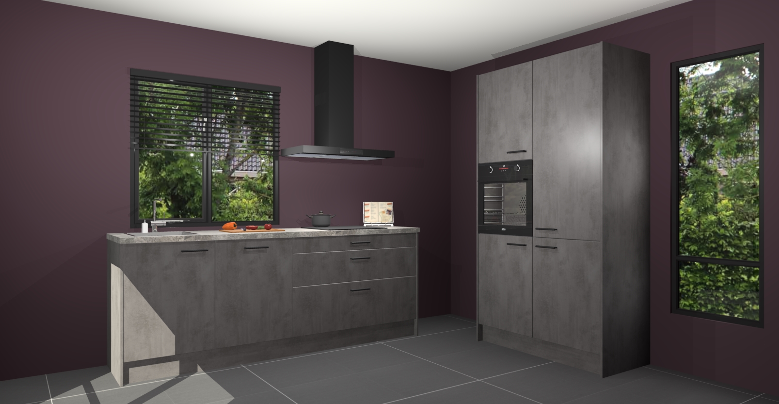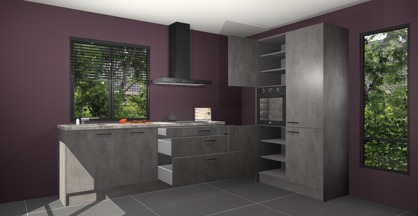 De setting is compleet gemaakt door de vijf inbouwapparaten: wanneer u gaat bestellen kunt u upgraden naar AEG-apparaten als oven, inductieplaat, afzuigkap, vaatwasser en koelkast. Kiest u voor onze Beton antraciet keuken Monaco, dan weet u zeker dat u te maken heeft met Duitse kwaliteit. Bovendien is er altijd sprake van een lage prijs en profiteren we aantrekkelijk leveringstermijn: die bedraagt slechts 7 weken ! Om het extra makkelijk te maken worden de keukenkasten reeds voorgemonteerd geleverd.