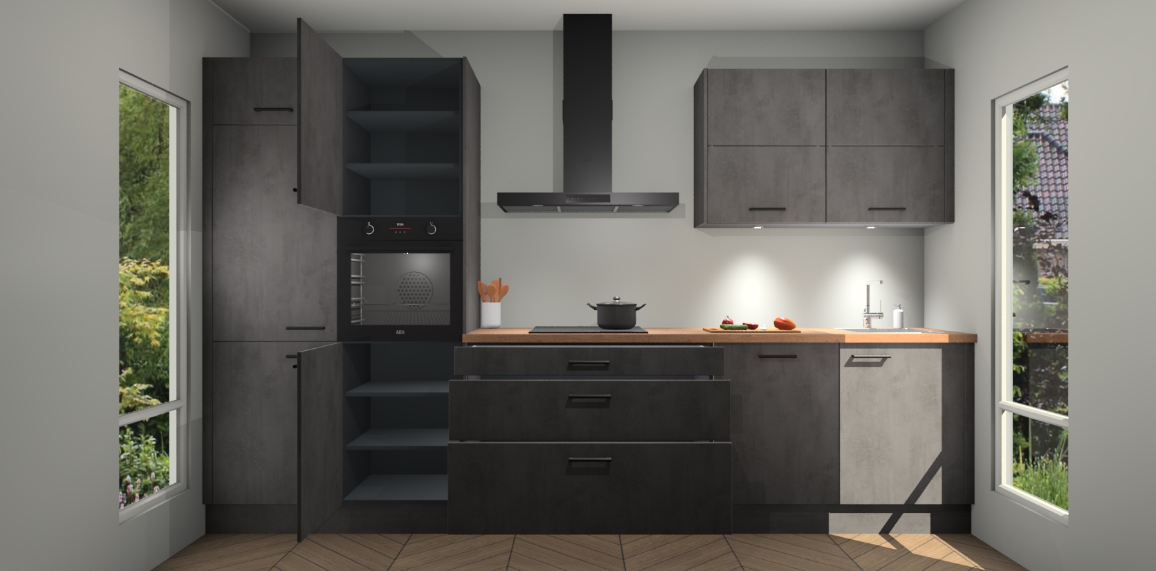 Maak kennis met de nieuwe Beton Antraciet Keuken Parijs - de perfecte designcombinatie van gemak, moderne elegantie en ultramodern design. Met een gemakkelijk te reinigen Beton Antraciet afwerking, zal de slankheid van deze keuken zeker een vleugje luxe toevoegen aan elke ruimte die hij inneemt.