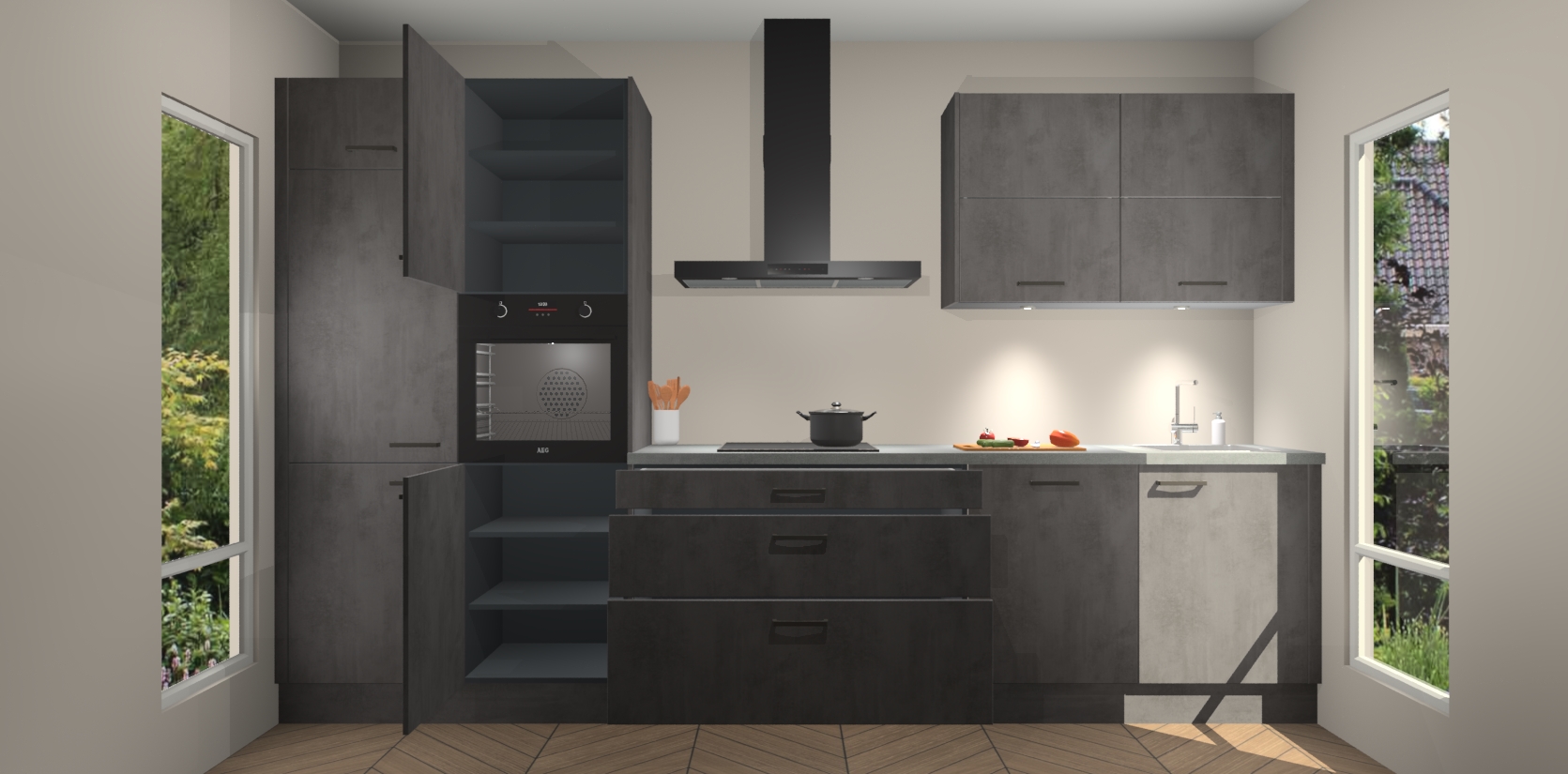 Maak kennis met de nieuwe Beton Antraciet Keuken Parijs - de perfecte designcombinatie van gemak, moderne elegantie en ultramodern design. Met een gemakkelijk te reinigen Beton Antraciet afwerking, zal de slankheid van deze keuken zeker een vleugje luxe toevoegen aan elke ruimte die hij inneemt.