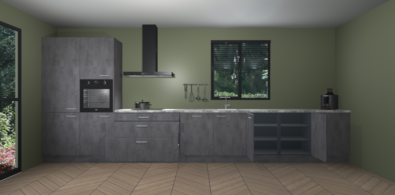 En het beste nog: 7 weken bezorging bij een constante, lage prijs! U bent verzekerd dat u nooit meer dan wat nodig is betaalt. Dus, waar wacht u nog op?  Mis deze kans niet om een revolutie in uw huis teweeg te brengen met onze verbluffende Beton  Antraciet keuken Quito! Bestel vandaag uw Beton Antraciet keuken Quito en geniet van het koken in stijl!