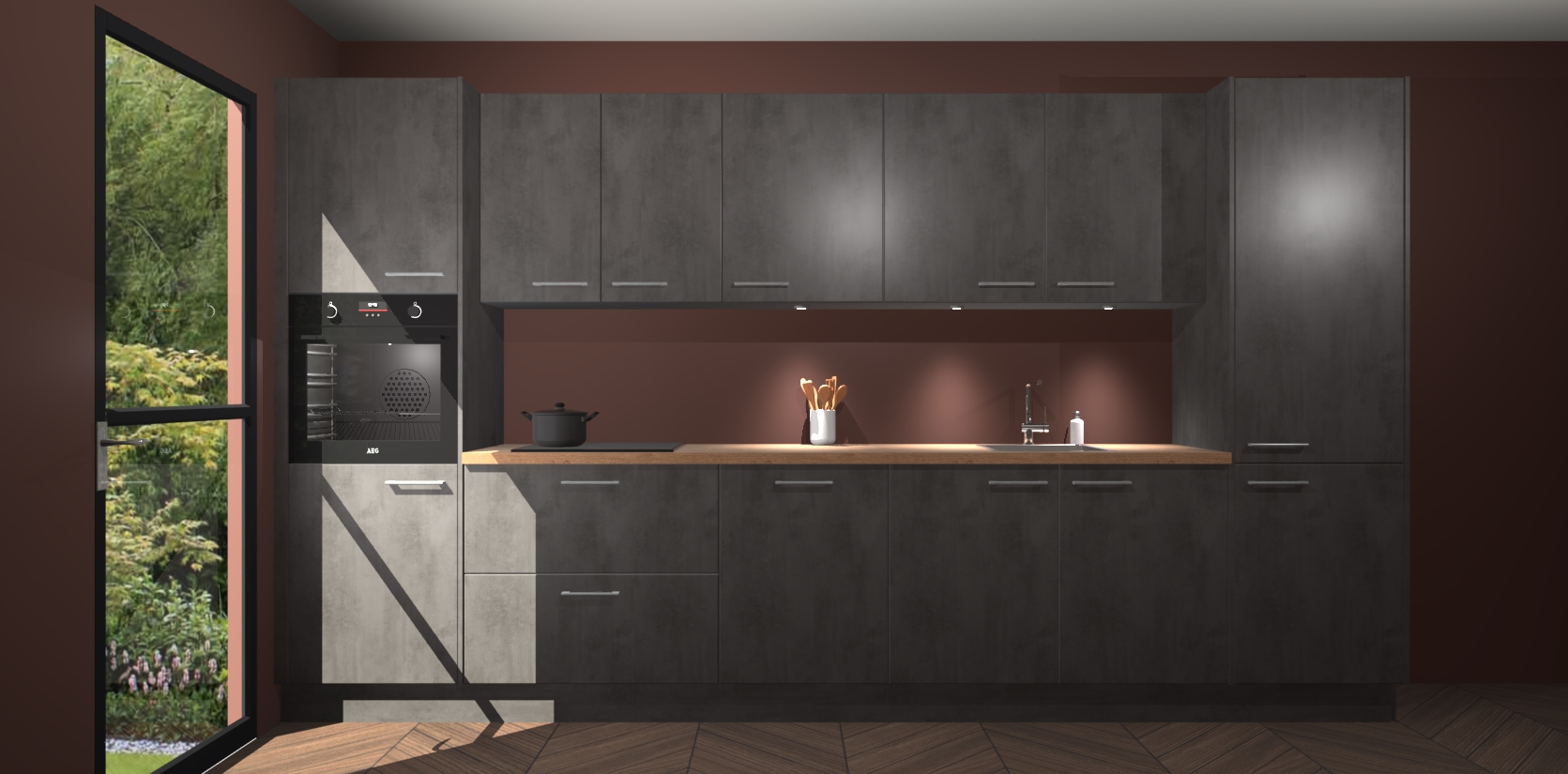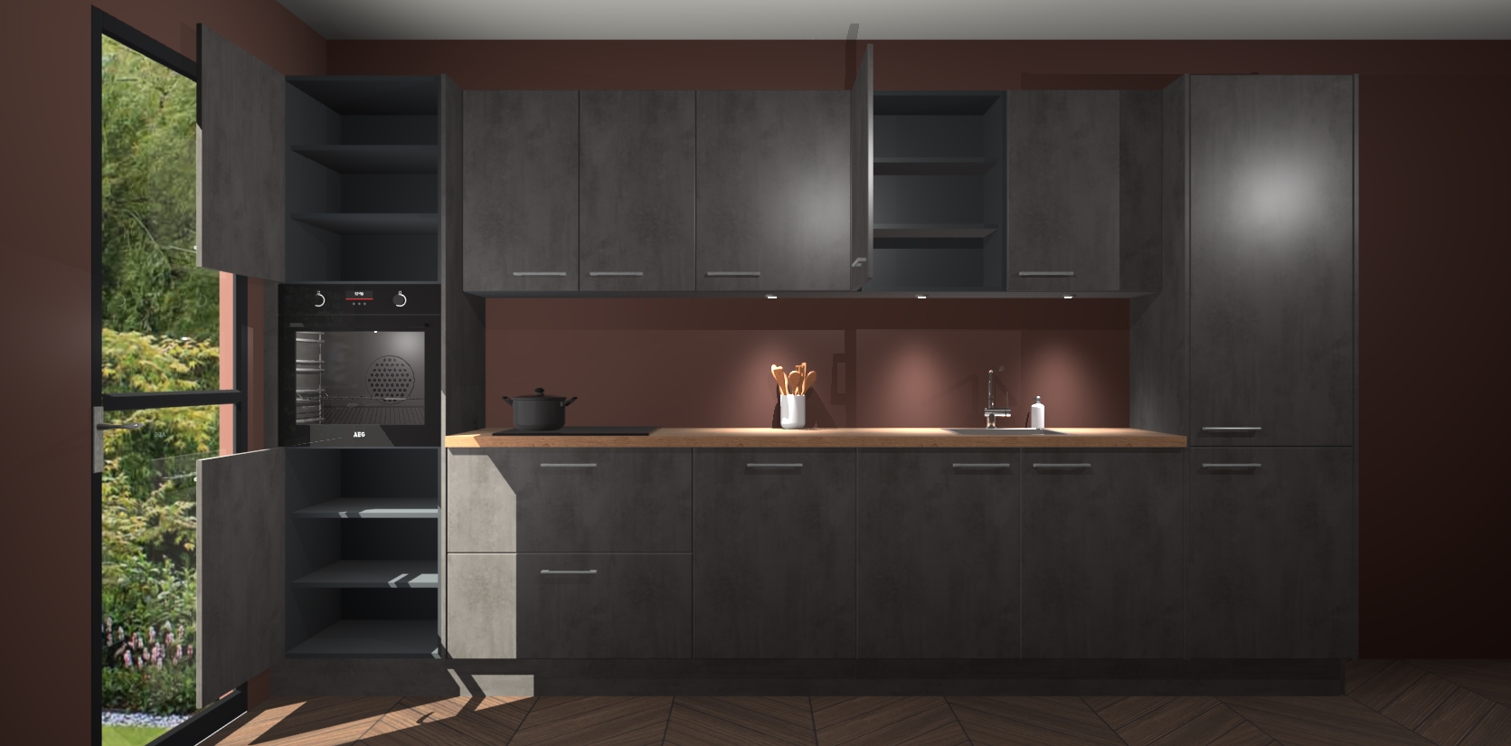 Dit is de perfecte keuken voor wie op zoek is naar een luxueuze stijl zonder zijn portemonnee te legen! Het chique ontwerp van de beton antraciet keuken Wels voegt dat vleugje verfijning toe aan elk huis. Het gemak van voorgemonteerde kasten bespaart u talloze uren tijd en energie, zodat u veel sneller dan verwacht kunt beginnen te genieten van uw prachtige nieuwe keuken. Bovendien bedraagt de levertijd slechts 7 weken.