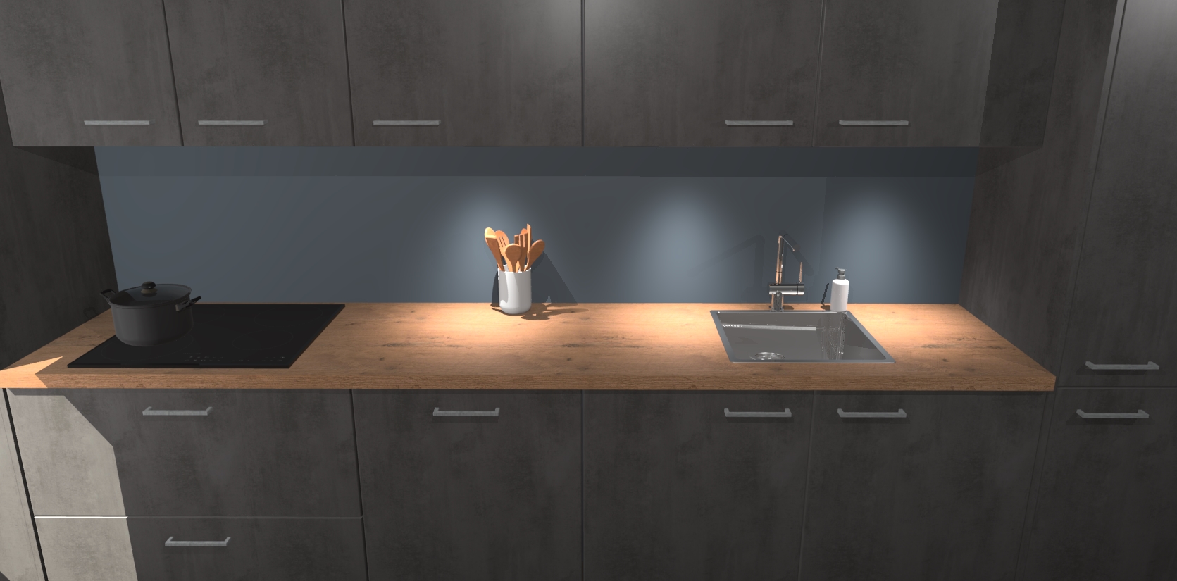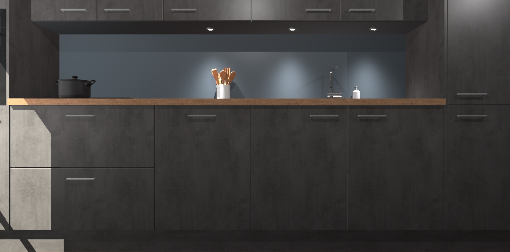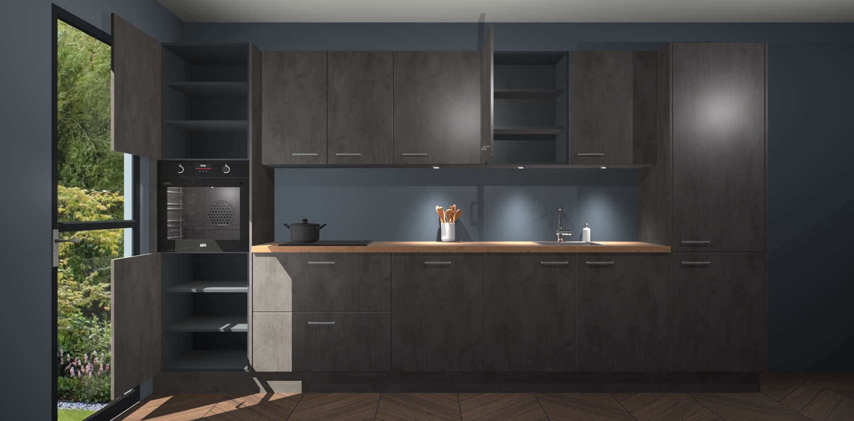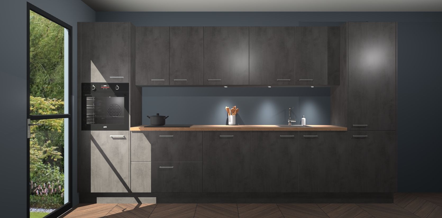 Dit is de perfecte keuken voor wie op zoek is naar een luxueuze stijl zonder zijn portemonnee te legen! Het chique ontwerp van de beton antraciet keuken Wels voegt dat vleugje verfijning toe aan elk huis. Het gemak van voorgemonteerde kasten bespaart u talloze uren tijd en energie, zodat u veel sneller dan verwacht kunt beginnen te genieten van uw prachtige nieuwe keuken. Bovendien bedraagt de levertijd slechts 7 weken.
