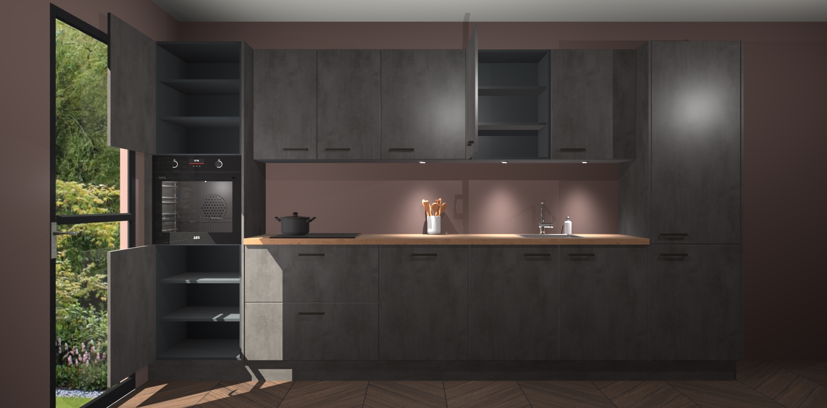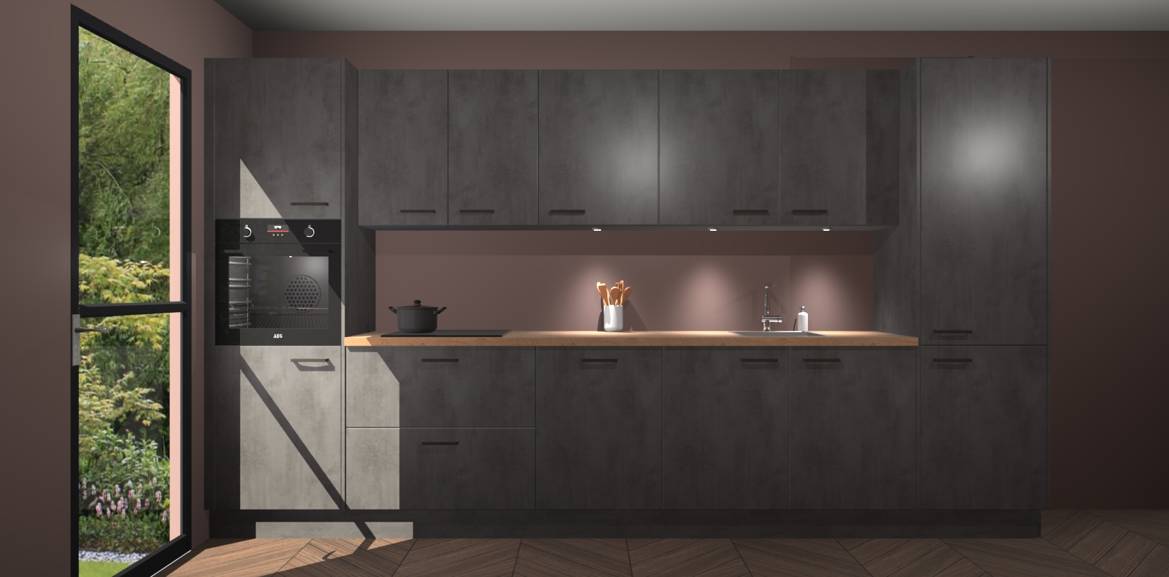 Dit is de perfecte keuken voor wie op zoek is naar een luxueuze stijl zonder zijn portemonnee te legen! Het chique ontwerp van de beton antraciet keuken Wels voegt dat vleugje verfijning toe aan elk huis. Het gemak van voorgemonteerde kasten bespaart u talloze uren tijd en energie, zodat u veel sneller dan verwacht kunt beginnen te genieten van uw prachtige nieuwe keuken. Bovendien bedraagt de levertijd slechts 7 weken.