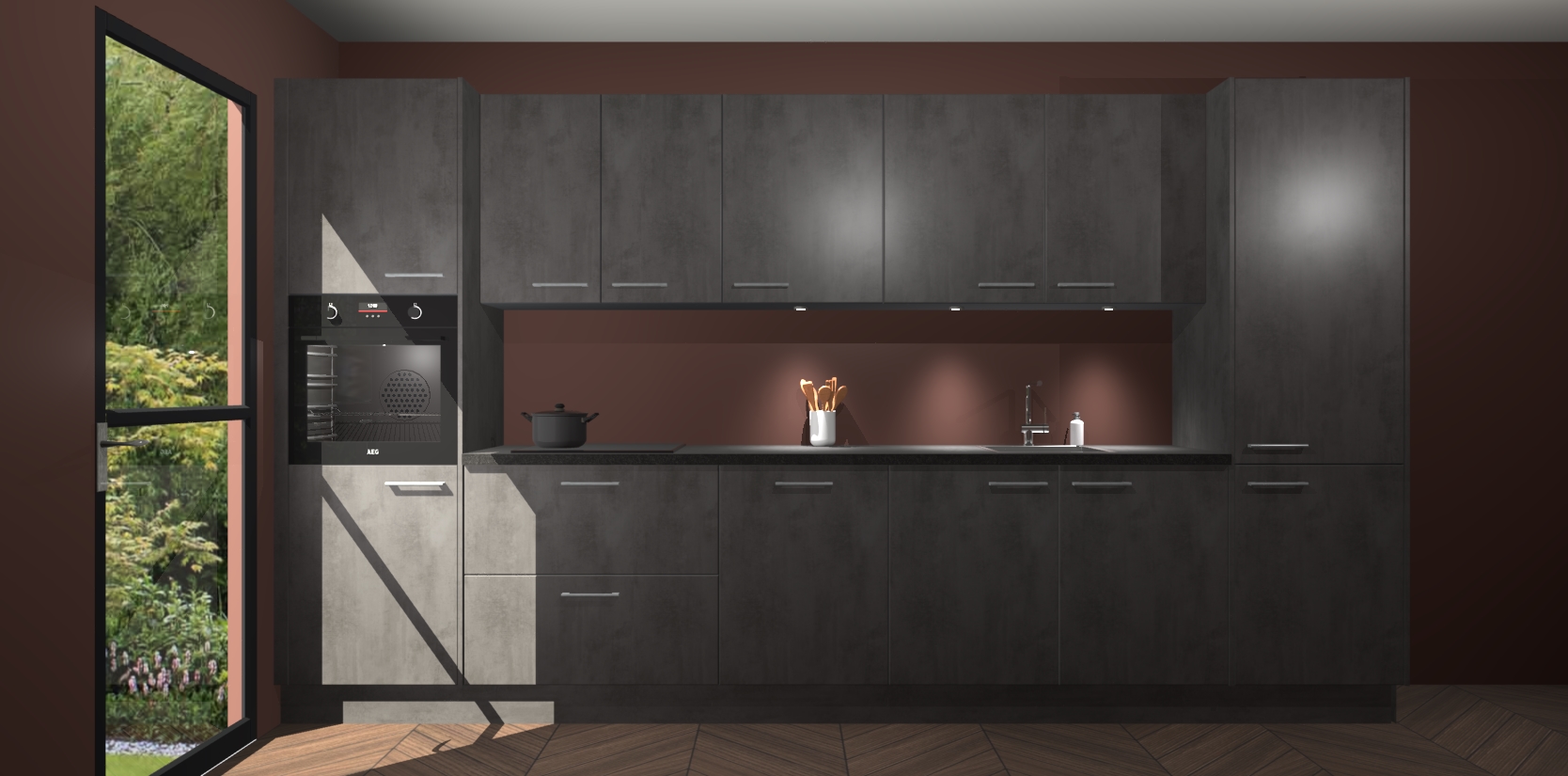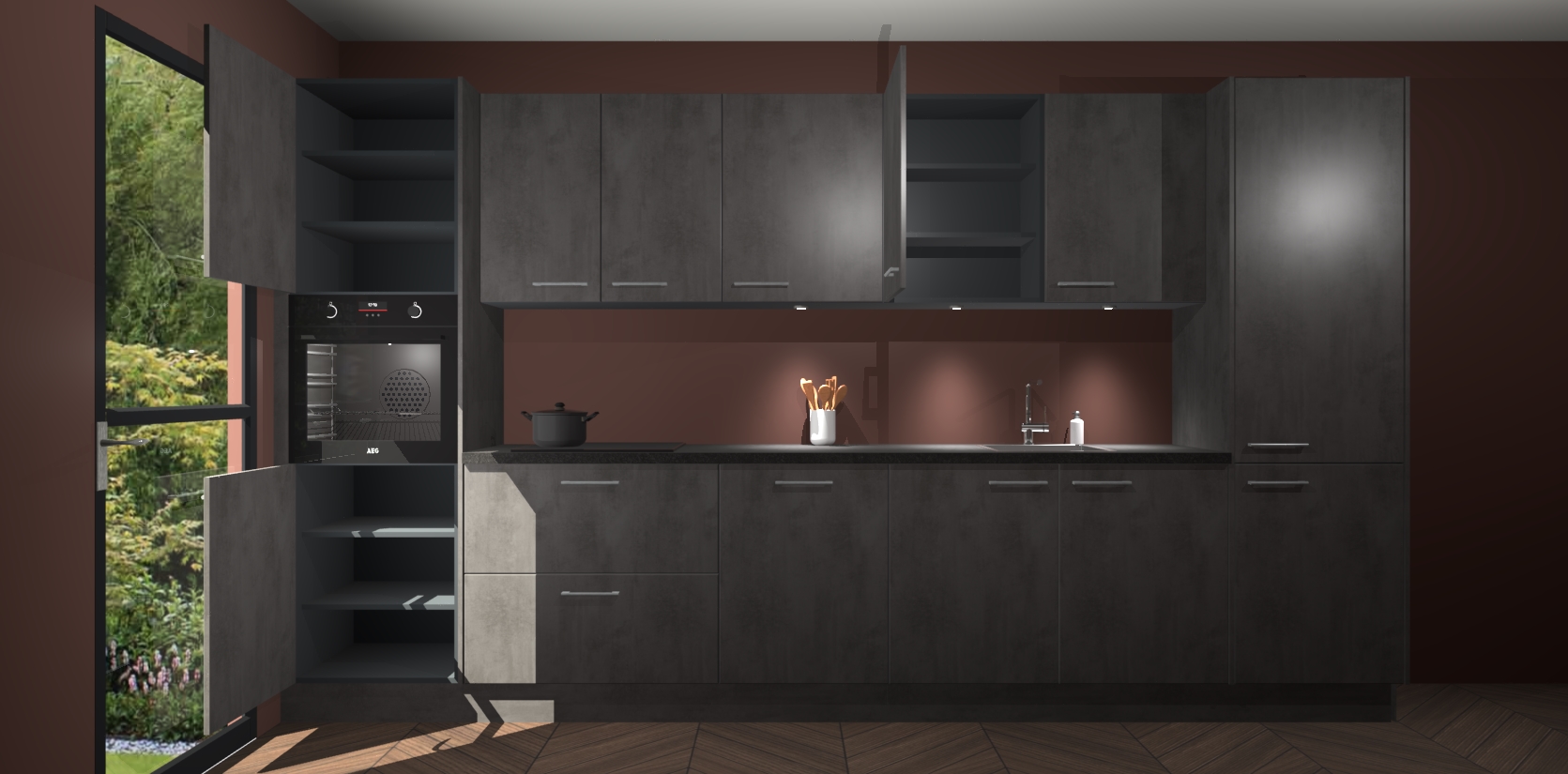 Dit is de perfecte keuken voor wie op zoek is naar een luxueuze stijl zonder zijn portemonnee te legen! Het chique ontwerp van de beton antraciet keuken Wels voegt dat vleugje verfijning toe aan elk huis. Het gemak van voorgemonteerde kasten bespaart u talloze uren tijd en energie, zodat u veel sneller dan verwacht kunt beginnen te genieten van uw prachtige nieuwe keuken. Bovendien bedraagt de levertijd slechts 7 weken.