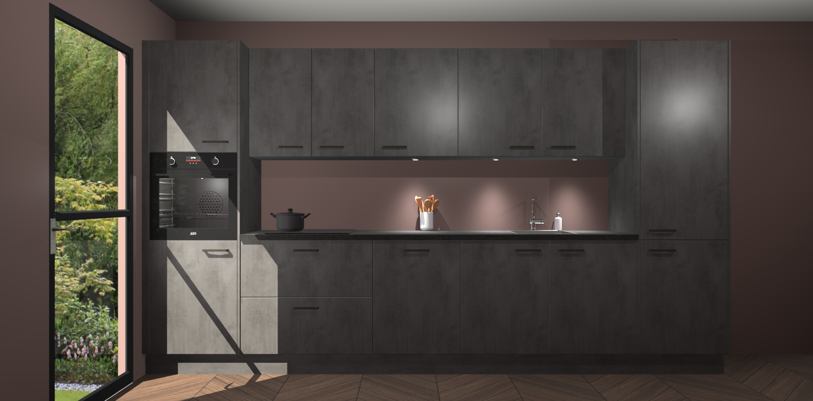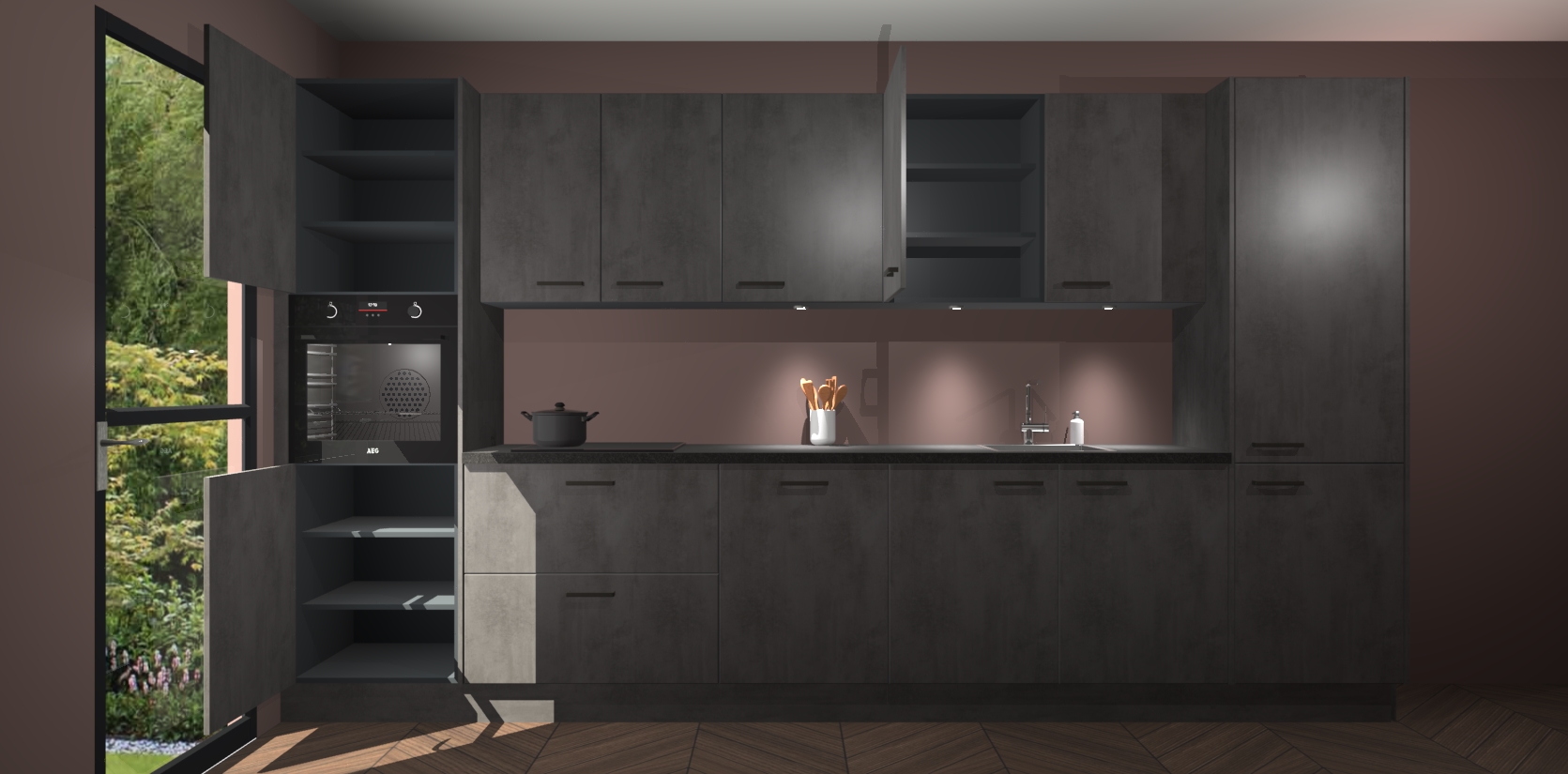 Dit is de perfecte keuken voor wie op zoek is naar een luxueuze stijl zonder zijn portemonnee te legen! Het chique ontwerp van de beton antraciet keuken Wels voegt dat vleugje verfijning toe aan elk huis. Het gemak van voorgemonteerde kasten bespaart u talloze uren tijd en energie, zodat u veel sneller dan verwacht kunt beginnen te genieten van uw prachtige nieuwe keuken. Bovendien bedraagt de levertijd slechts 7 weken.