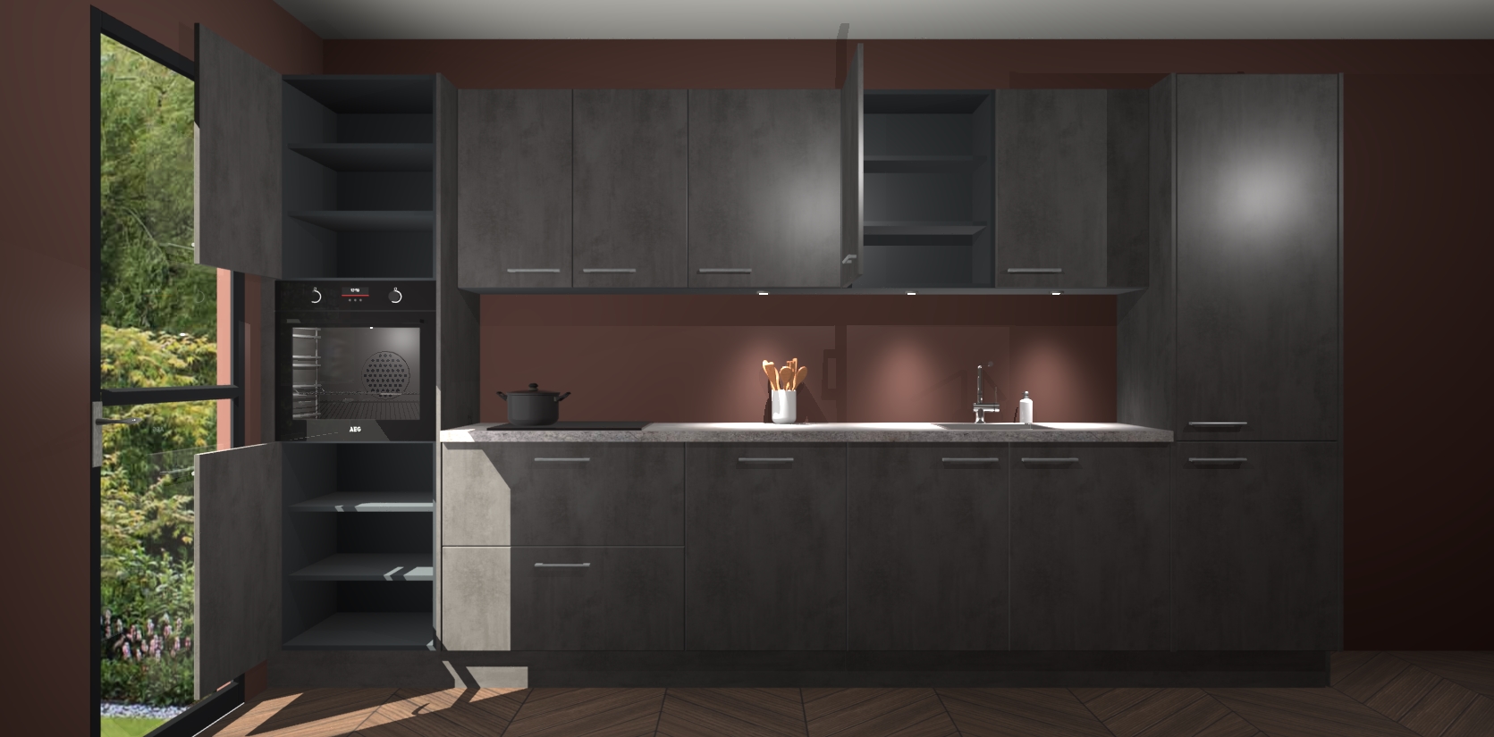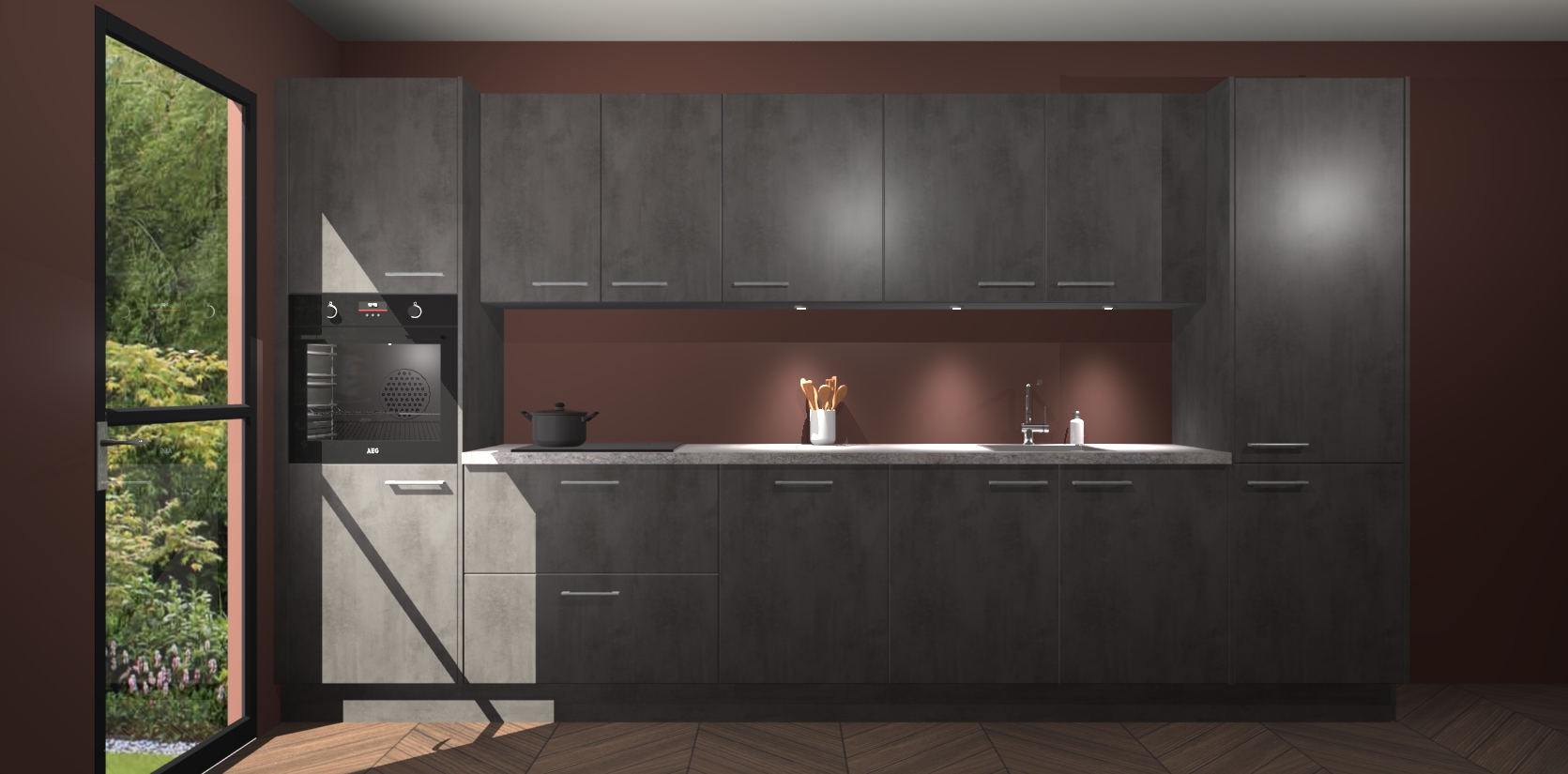 Dit is de perfecte keuken voor wie op zoek is naar een luxueuze stijl zonder zijn portemonnee te legen! Het chique ontwerp van de beton antraciet keuken Wels voegt dat vleugje verfijning toe aan elk huis. Het gemak van voorgemonteerde kasten bespaart u talloze uren tijd en energie, zodat u veel sneller dan verwacht kunt beginnen te genieten van uw prachtige nieuwe keuken. Bovendien bedraagt de levertijd slechts 7 weken.