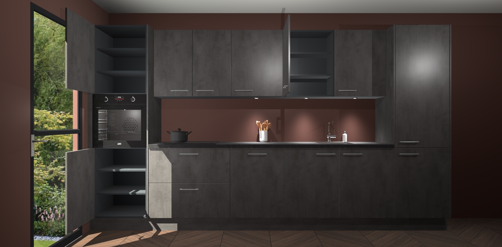 Dit is de perfecte keuken voor wie op zoek is naar een luxueuze stijl zonder zijn portemonnee te legen! Het chique ontwerp van de beton antraciet keuken Wels voegt dat vleugje verfijning toe aan elk huis. Het gemak van voorgemonteerde kasten bespaart u talloze uren tijd en energie, zodat u veel sneller dan verwacht kunt beginnen te genieten van uw prachtige nieuwe keuken. Bovendien bedraagt de levertijd slechts 7 weken.