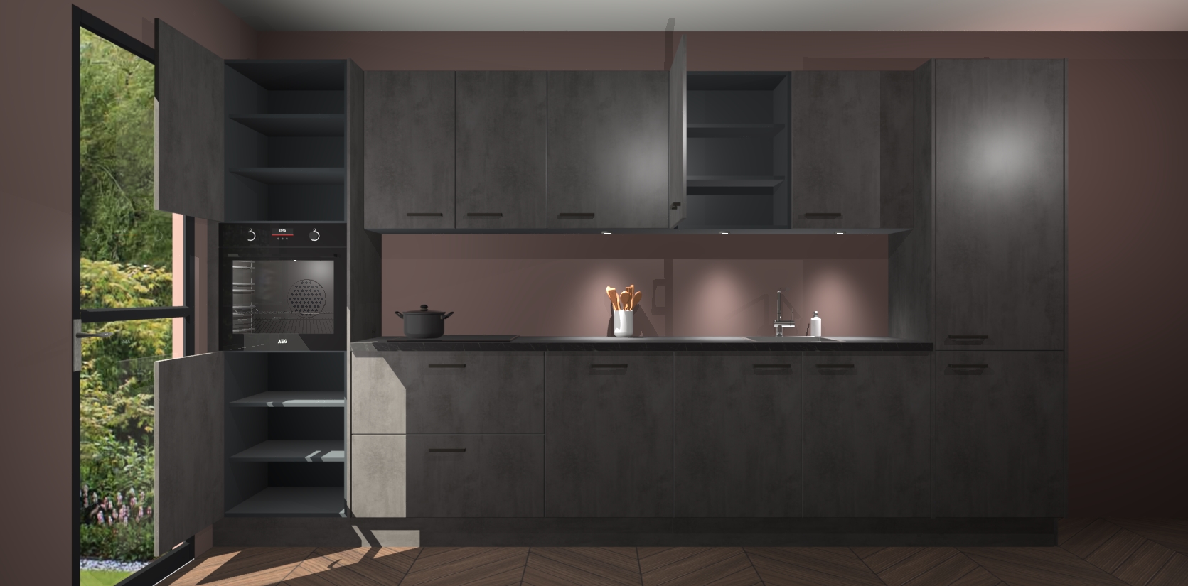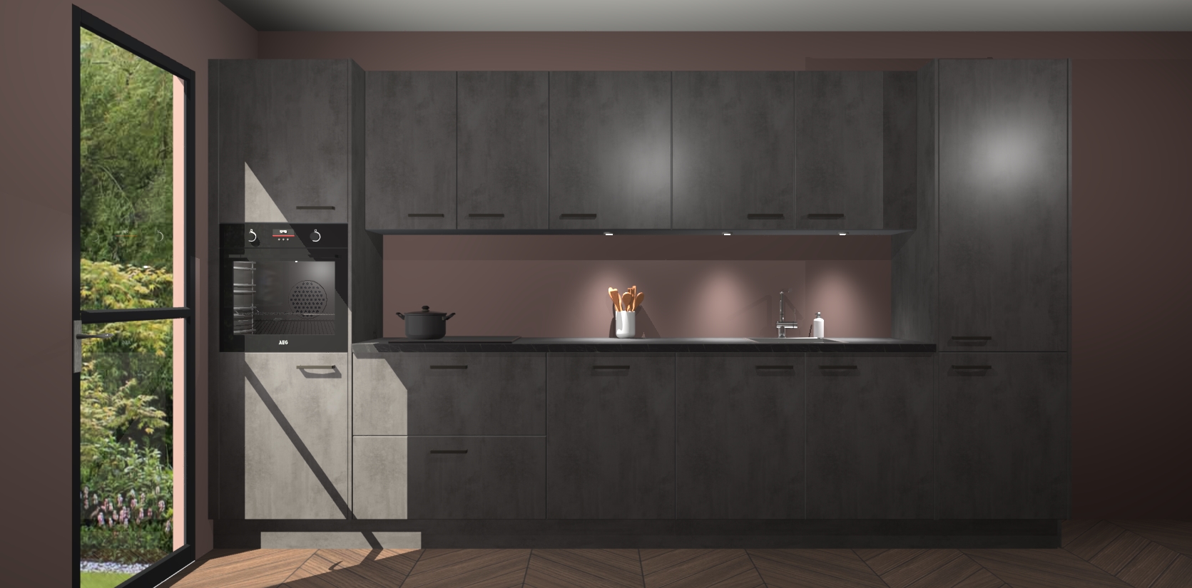 Dit is de perfecte keuken voor wie op zoek is naar een luxueuze stijl zonder zijn portemonnee te legen! Het chique ontwerp van de beton antraciet keuken Wels voegt dat vleugje verfijning toe aan elk huis. Het gemak van voorgemonteerde kasten bespaart u talloze uren tijd en energie, zodat u veel sneller dan verwacht kunt beginnen te genieten van uw prachtige nieuwe keuken. Bovendien bedraagt de levertijd slechts 7 weken.