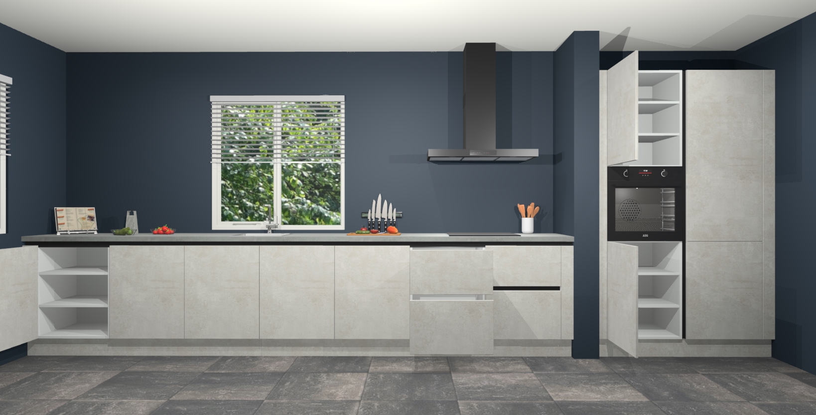 Maak kennis met de Beton opaal keuken Elzas - de perfecte aanvulling voor uw moderne keuken! Ervaar tijdloos design, elegantie en een chique uitstraling met onze handgrepen, soft-close deuren en veel opbergruimte. Dit alles wordt aangeboden tegen een vaste lage prijs voor ongeëvenaarde Duitse keukenkwaliteit!