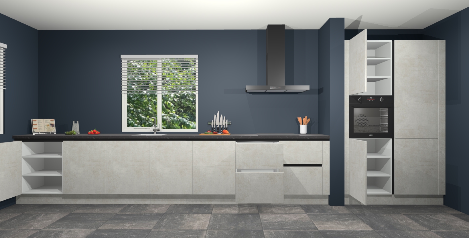 Maak kennis met de Beton opaal keuken Elzas - de perfecte aanvulling voor uw moderne keuken! Ervaar tijdloos design, elegantie en een chique uitstraling met onze handgrepen, soft-close deuren en veel opbergruimte. Dit alles wordt aangeboden tegen een vaste lage prijs voor ongeëvenaarde Duitse keukenkwaliteit!