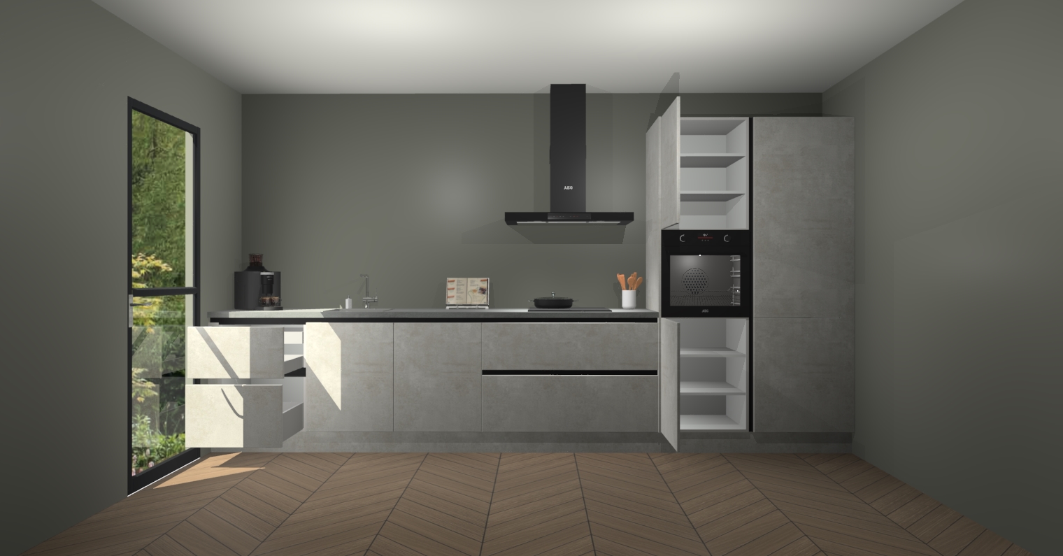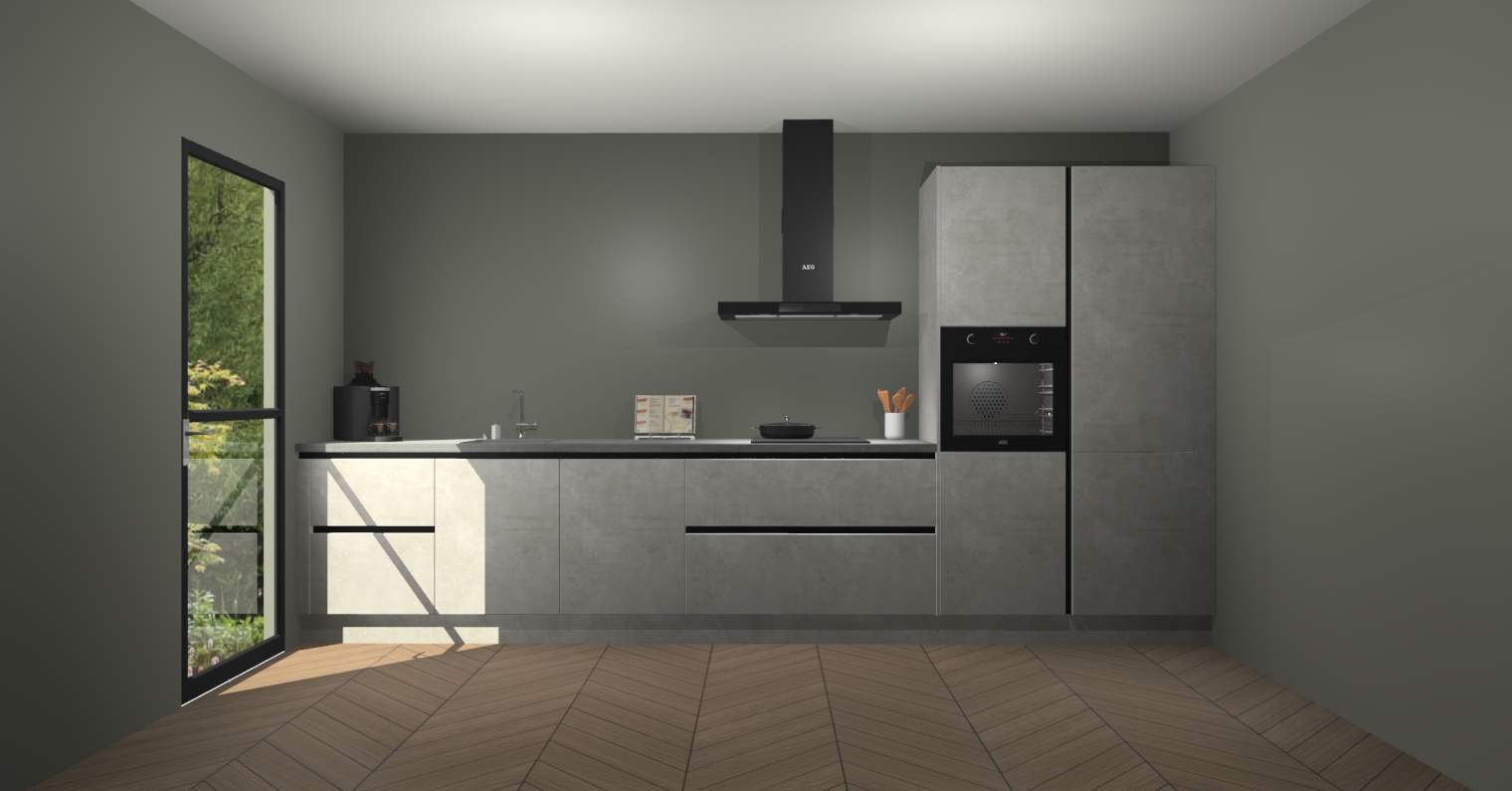 De Beton Opaal greeploze keuken Leuven is de perfecte mix van modern en tijdloos design. Met zijn prachtige glazen deuren op de bovenkastjes voegt hij echt iets speciaals en unieks toe aan elke keuken. En met vijf ingebouwde apparaten inbegrepen - een oven, inductiekookplaat, afzuigkap, vaatwasser en koelkast - kunt u deze keuken echt helemaal van uzelf maken! U kunt na bestelling ook upgraden naar AEG voor een nog hogere kwaliteitservaring.