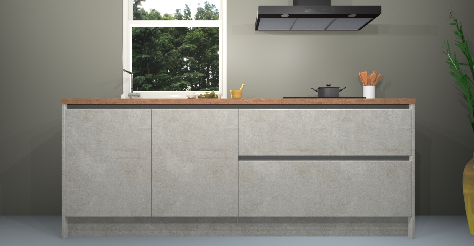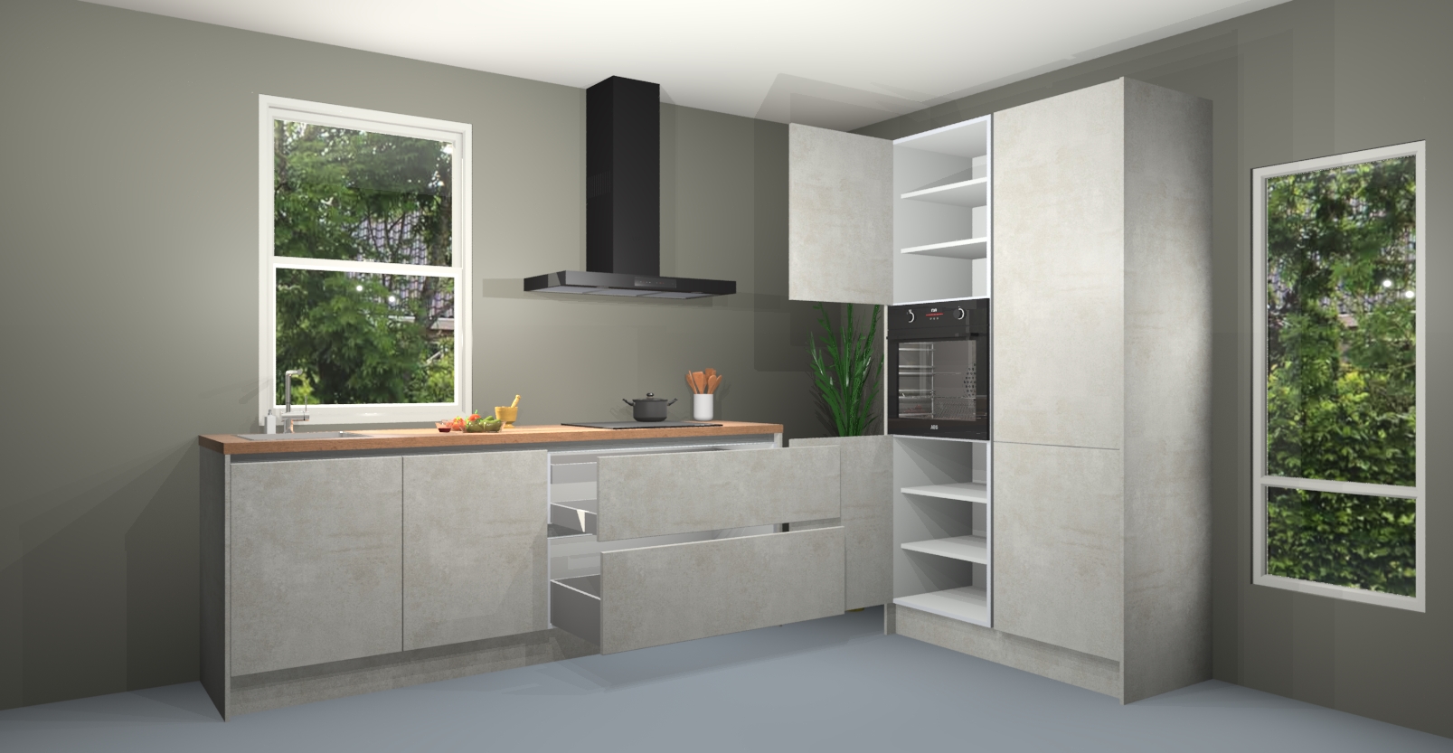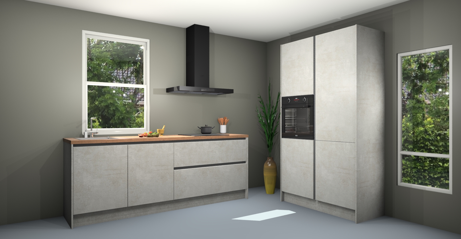 De Beton opaal greeploze keuken Monaco heeft voldoende opbergruimte om uw keukenbenodigdheden georganiseerd en netjes te houden. Geniet van het gemak van de soft-close deuren, die deze stijlvolle look perfect afmaken. Maar dat is nog niet alles. Met de Beton opaal greeploze keuken Monaco krijgt u maar liefst 5 ingebouwde apparaten: een oven, inductiekookplaat, afzuigkap, vaatwasser en koelkast. Deze kunnen gemakkelijk worden geüpgraded naar AEG als ze besteld zijn.