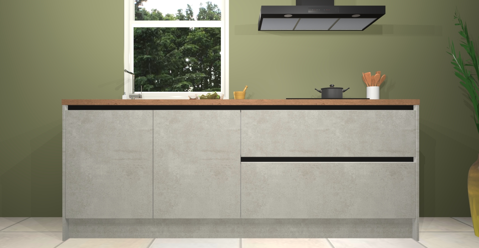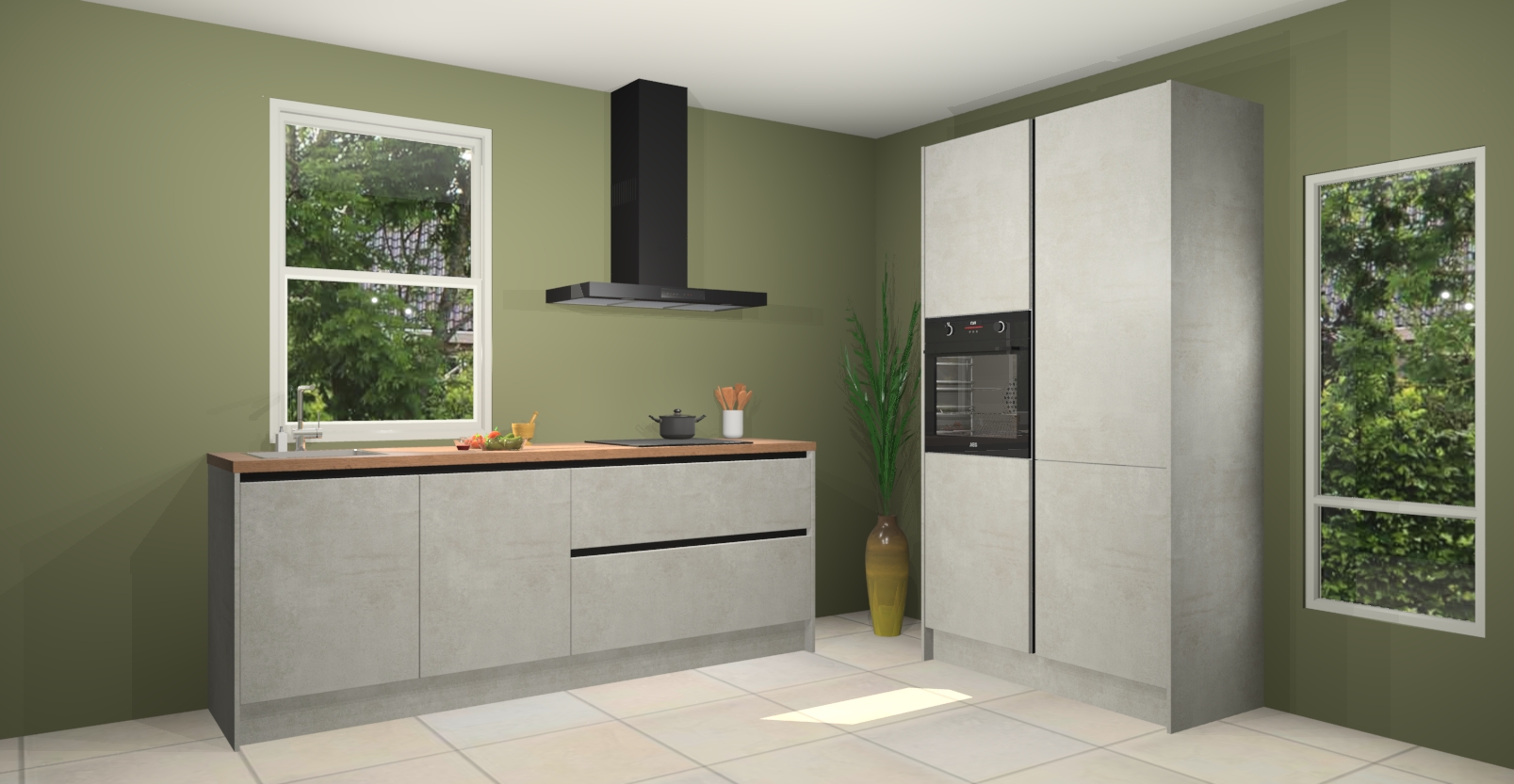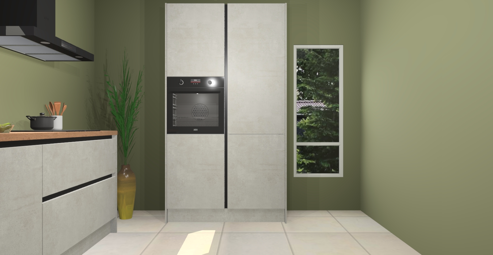 De Beton opaal greeploze keuken Monaco heeft voldoende opbergruimte om uw keukenbenodigdheden georganiseerd en netjes te houden. Geniet van het gemak van de soft-close deuren, die deze stijlvolle look perfect afmaken. Maar dat is nog niet alles. Met de Beton opaal greeploze keuken Monaco krijgt u maar liefst 5 ingebouwde apparaten: een oven, inductiekookplaat, afzuigkap, vaatwasser en koelkast. Deze kunnen gemakkelijk worden geüpgraded naar AEG als ze besteld zijn.
