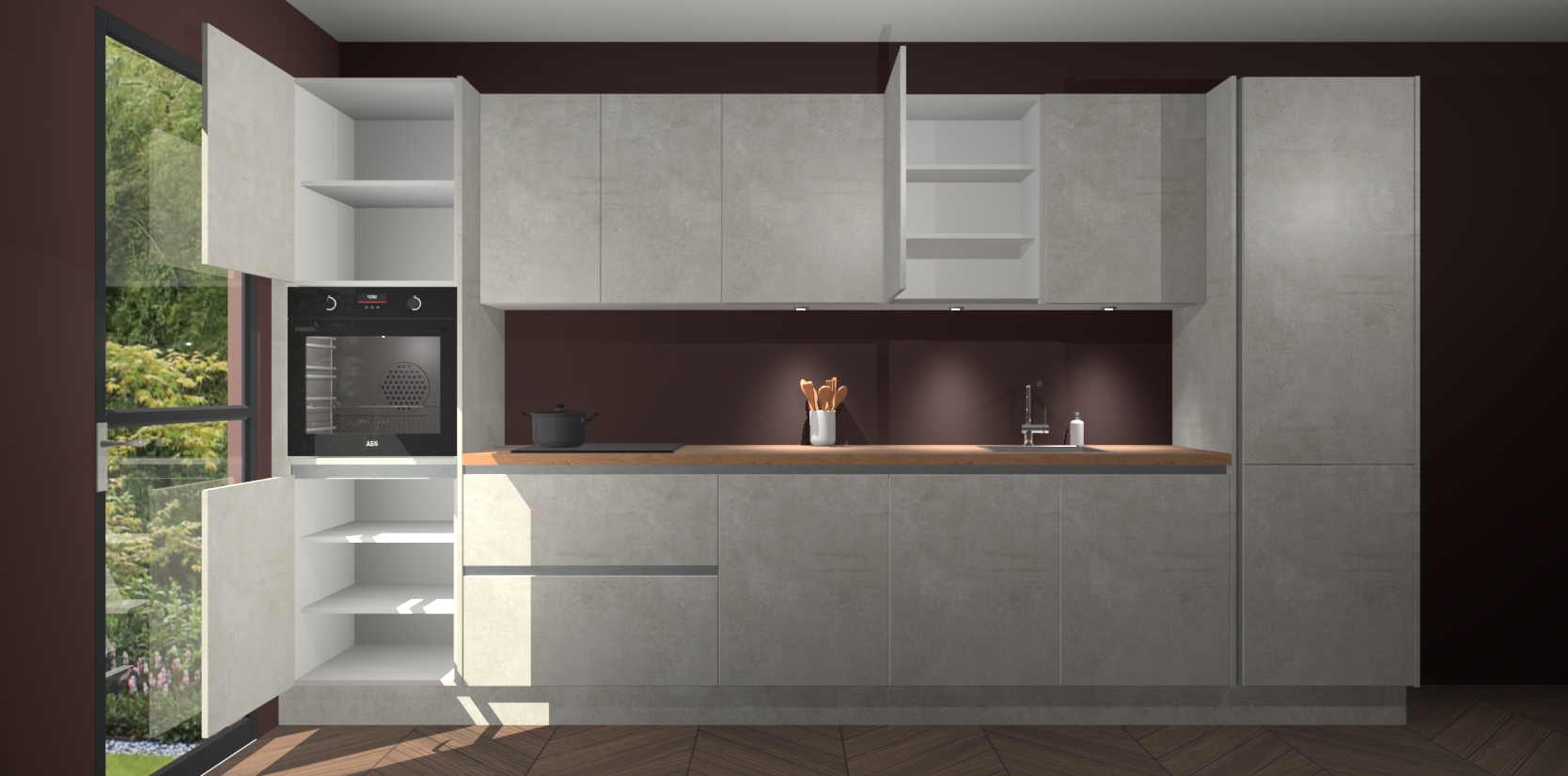 Dit is de perfecte keuken voor wie op zoek is naar een luxueuze stijl zonder zijn portemonnee te legen! Het chique ontwerp van de beton opaal greeploze keuken Wels voegt dat vleugje verfijning toe aan elk huis. Het gemak van voorgemonteerde kasten bespaart u talloze uren tijd en energie, zodat u veel sneller dan verwacht kunt beginnen te genieten van uw prachtige nieuwe keuken. Bovendien bedraagt de levertijd slechts 7 weken.
