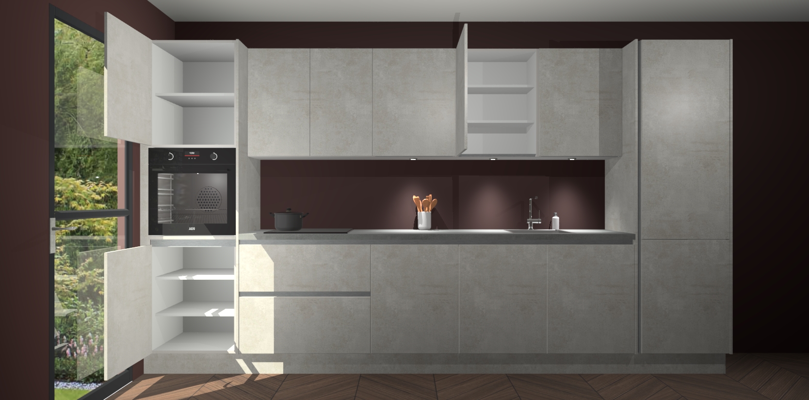 Dit is de perfecte keuken voor wie op zoek is naar een luxueuze stijl zonder zijn portemonnee te legen! Het chique ontwerp van de beton opaal greeploze keuken Wels voegt dat vleugje verfijning toe aan elk huis. Het gemak van voorgemonteerde kasten bespaart u talloze uren tijd en energie, zodat u veel sneller dan verwacht kunt beginnen te genieten van uw prachtige nieuwe keuken. Bovendien bedraagt de levertijd slechts 7 weken.