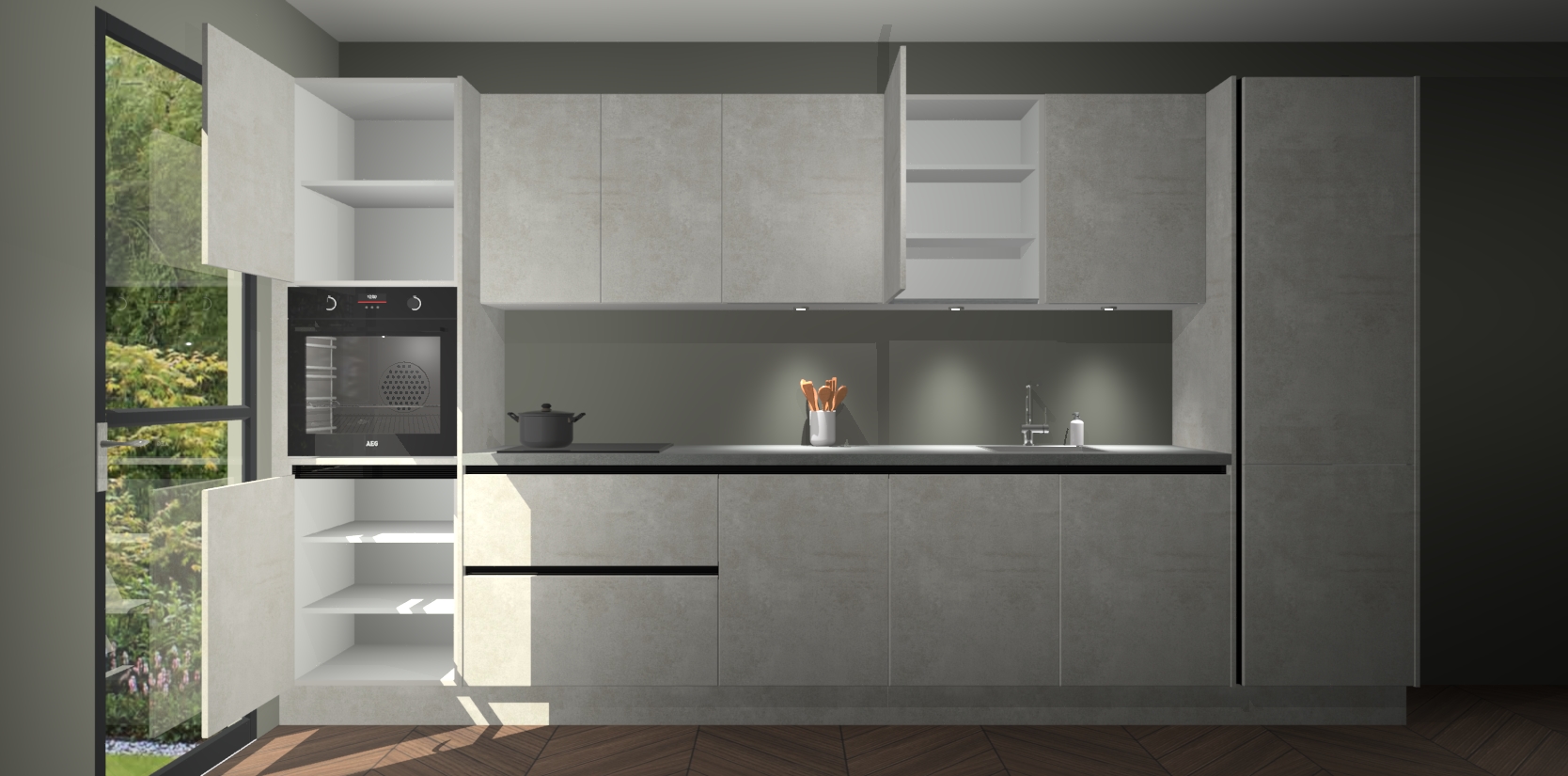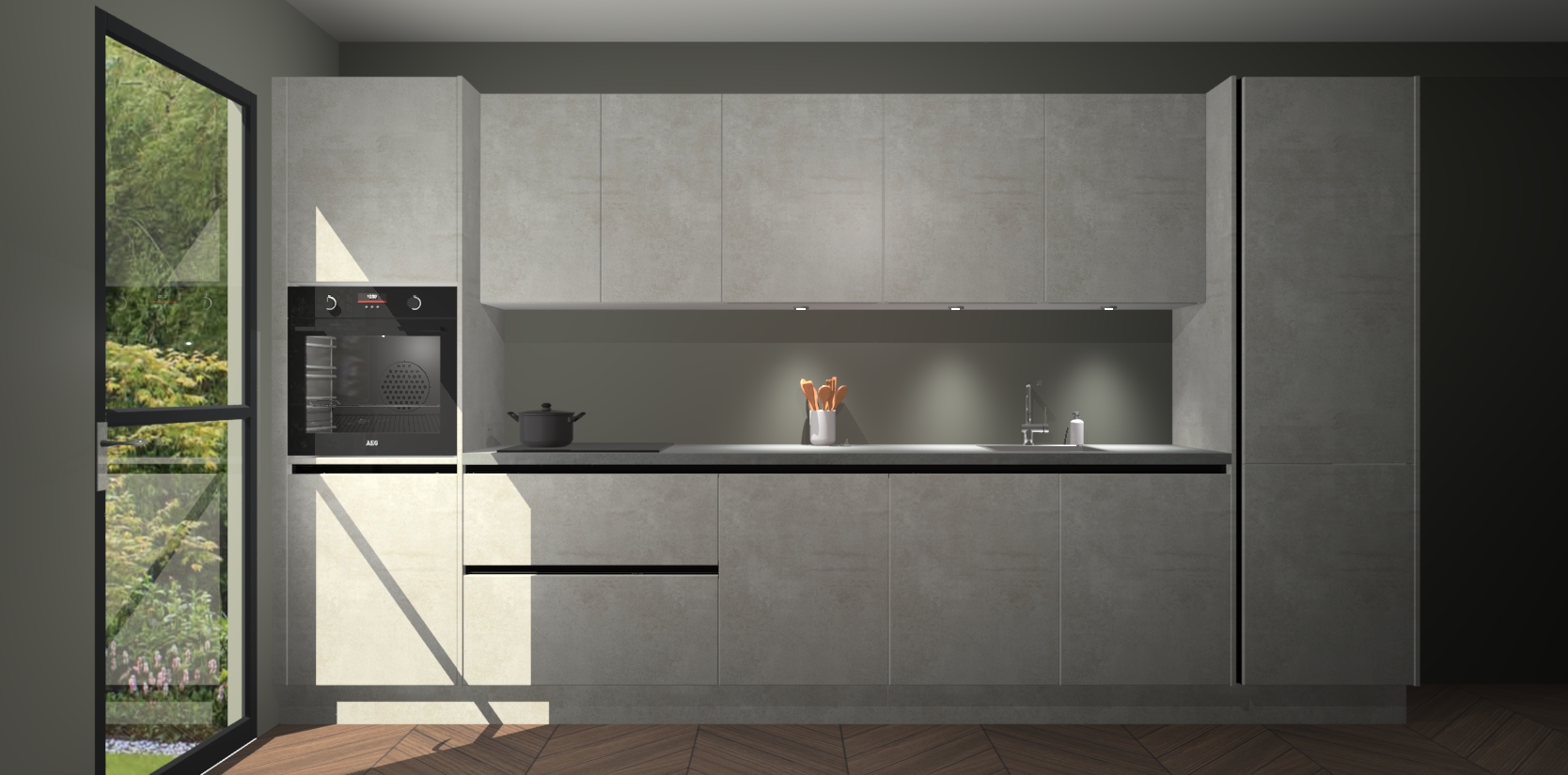 Dit is de perfecte keuken voor wie op zoek is naar een luxueuze stijl zonder zijn portemonnee te legen! Het chique ontwerp van de beton opaal greeploze keuken Wels voegt dat vleugje verfijning toe aan elk huis. Het gemak van voorgemonteerde kasten bespaart u talloze uren tijd en energie, zodat u veel sneller dan verwacht kunt beginnen te genieten van uw prachtige nieuwe keuken. Bovendien bedraagt de levertijd slechts 7 weken.