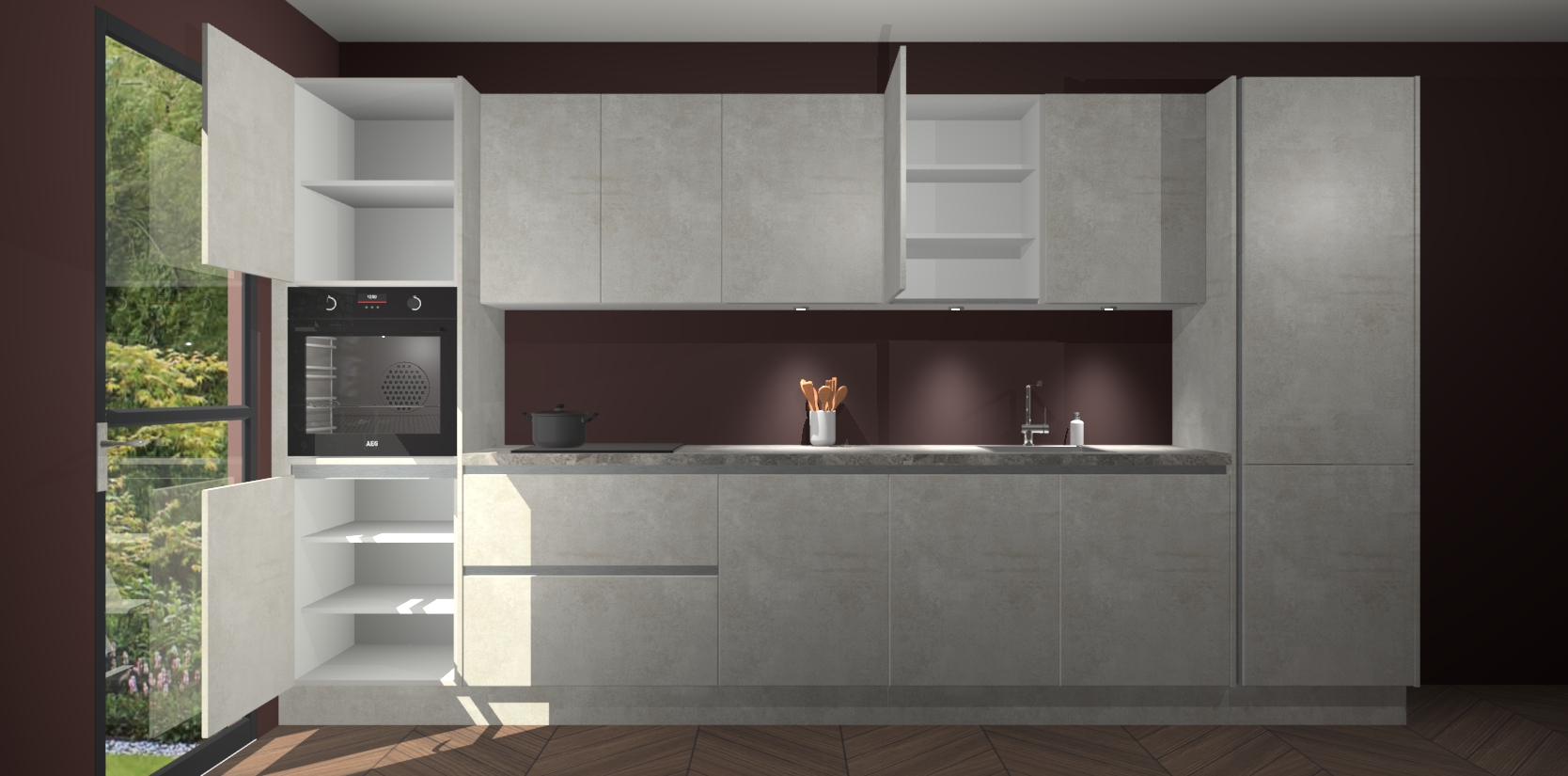 Dit is de perfecte keuken voor wie op zoek is naar een luxueuze stijl zonder zijn portemonnee te legen! Het chique ontwerp van de beton opaal greeploze keuken Wels voegt dat vleugje verfijning toe aan elk huis. Het gemak van voorgemonteerde kasten bespaart u talloze uren tijd en energie, zodat u veel sneller dan verwacht kunt beginnen te genieten van uw prachtige nieuwe keuken. Bovendien bedraagt de levertijd slechts 7 weken.