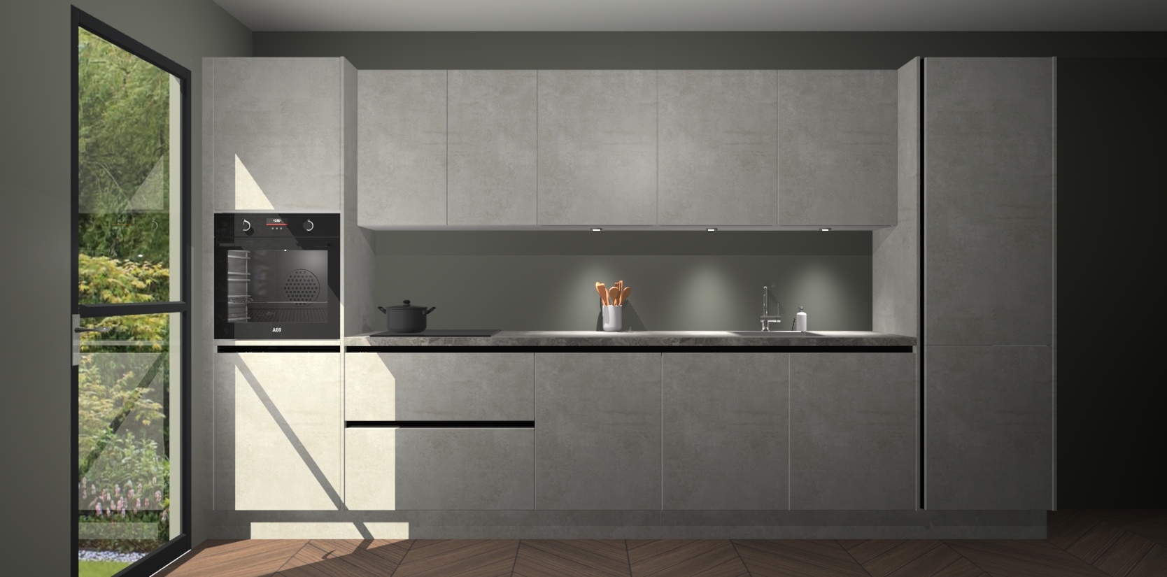 Dit is de perfecte keuken voor wie op zoek is naar een luxueuze stijl zonder zijn portemonnee te legen! Het chique ontwerp van de beton opaal greeploze keuken Wels voegt dat vleugje verfijning toe aan elk huis. Het gemak van voorgemonteerde kasten bespaart u talloze uren tijd en energie, zodat u veel sneller dan verwacht kunt beginnen te genieten van uw prachtige nieuwe keuken. Bovendien bedraagt de levertijd slechts 7 weken.