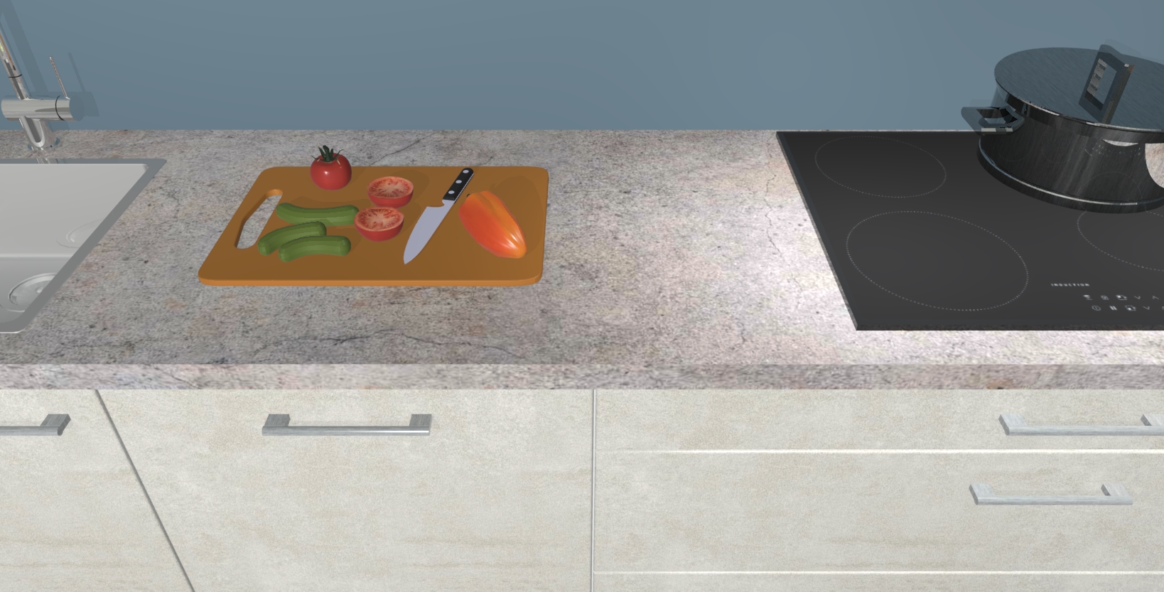 - Uitsparing van kookplaat, spoelbak en kraan dient u zelf te verzorgen.