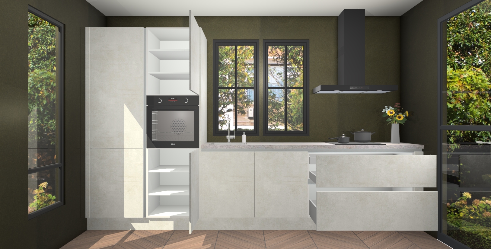 Dit is de perfecte keuken voor wie op zoek is naar een luxueuze stijl zonder zijn portemonnee te legen! Het chique ontwerp van de Beton opaal keuken Brussel voegt dat vleugje verfijning toe aan elk huis. Het gemak van voorgemonteerde kasten bespaart u talloze uren tijd en energie, zodat u veel sneller dan verwacht kunt beginnen te genieten van uw prachtige nieuwe keuken. Bovendien bedraagt de levertijd slechts 7 weken.