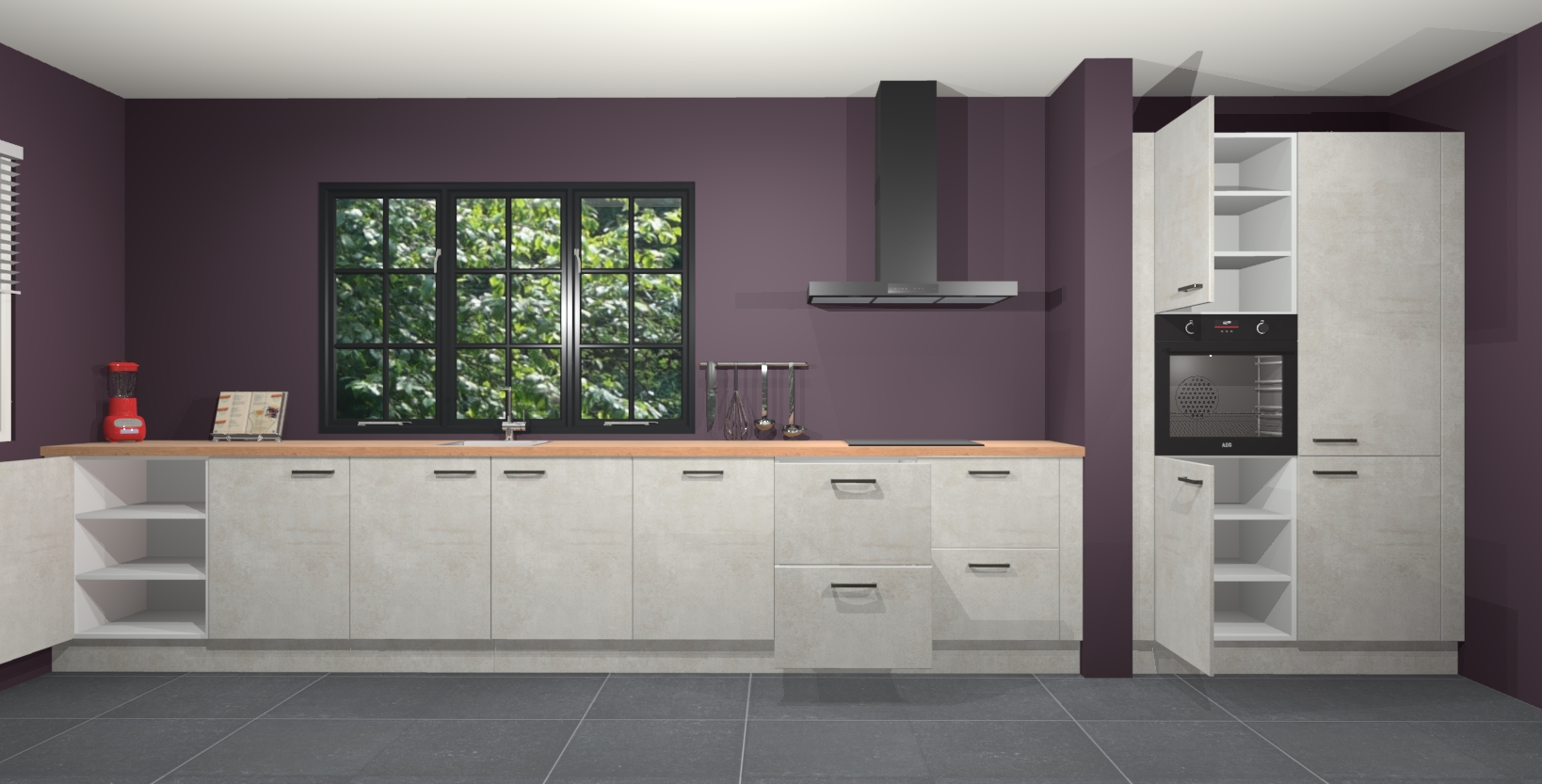 Met de Beton opaal keuken Elzas Maakt u van uw keuken het pronkstuk van uw huis. Stijlvol en toch praktisch, de nieuwste look voor wie meer waarde en charme aan zijn huis wil toevoegen. Met prachtige handgrepen die zich lenen voor een klassieke stijlbron, zal u niet teleurgesteld zijn in het resultaat. De soft-close deurscharnieren geven een gevoel van luxe omdat ze zachtjes bewegen zonder storende of krakende geluiden te veroorzaken.