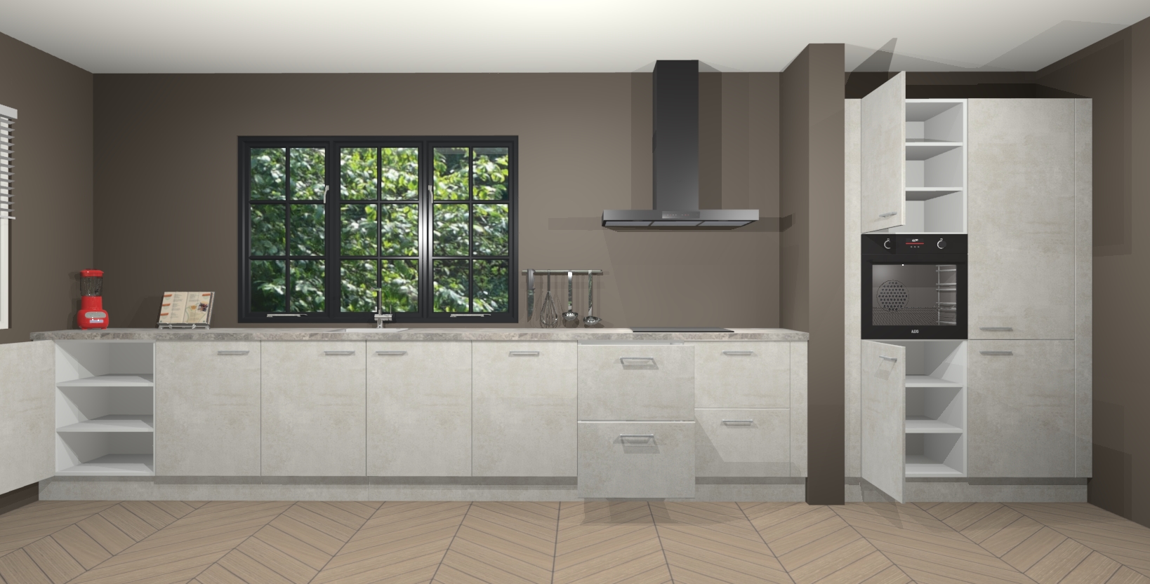 Maak kennis met de Beton opaal keuken Elzas - de perfecte aanvulling voor uw moderne keuken! Ervaar tijdloos design, elegantie en een chique uitstraling met onze handgrepen, soft-close deuren en veel opbergruimte. Dit alles wordt aangeboden tegen een vaste lage prijs voor ongeëvenaarde Duitse keukenkwaliteit!
