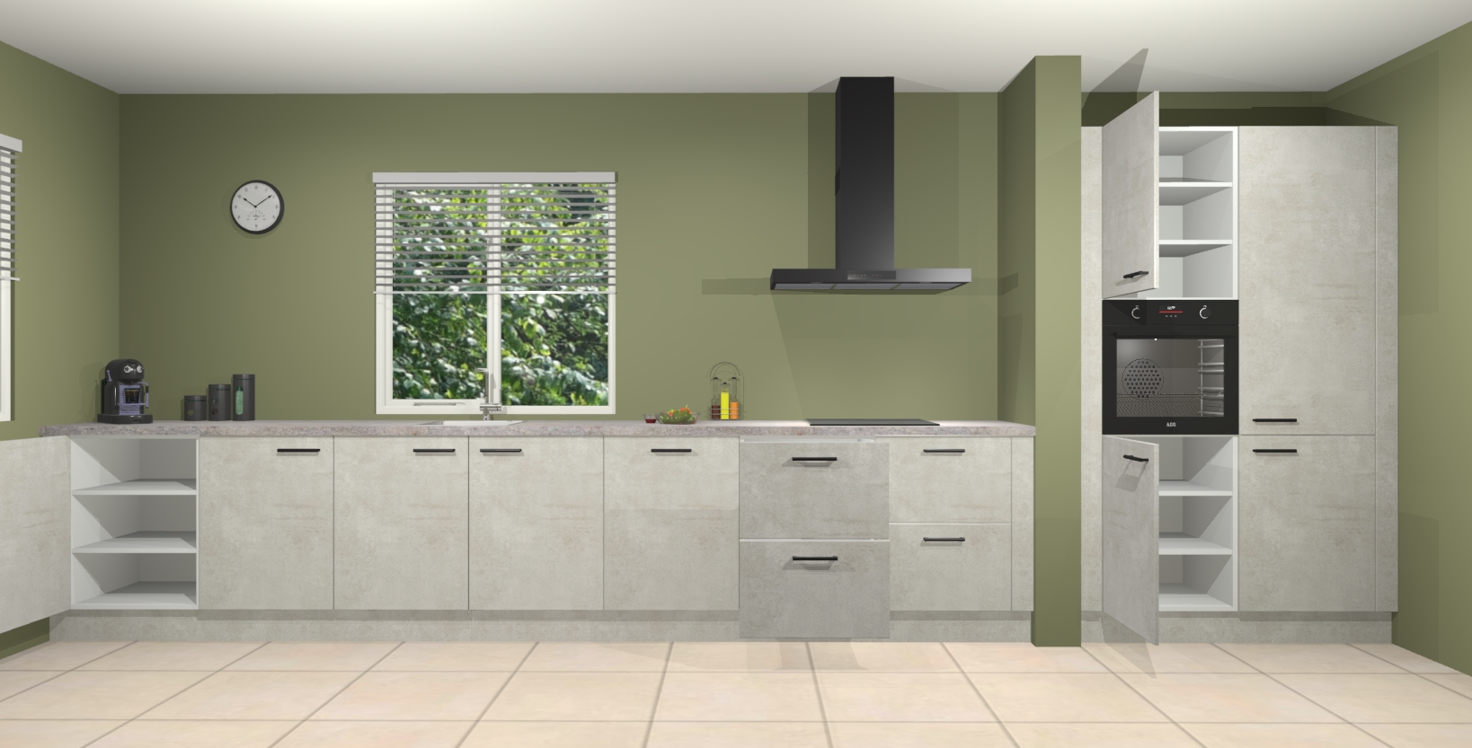 Maak kennis met de Beton opaal keuken Elzas - de perfecte aanvulling voor uw moderne keuken! Ervaar tijdloos design, elegantie en een chique uitstraling met onze handgrepen, soft-close deuren en veel opbergruimte. Dit alles wordt aangeboden tegen een vaste lage prijs voor ongeëvenaarde Duitse keukenkwaliteit!