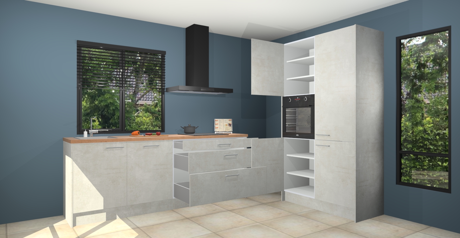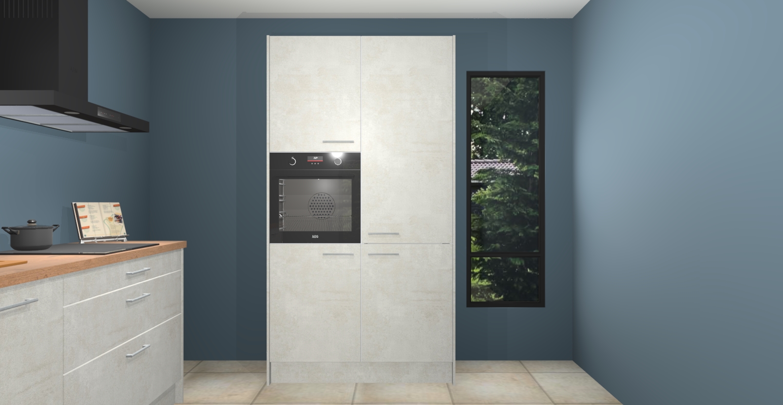 De setting is compleet gemaakt door de vijf inbouwapparaten: wanneer u gaat bestellen kunt u upgraden naar AEG-apparaten als oven, inductieplaat, afzuigkap, vaatwasser en koelkast. Kiest u voor onze Beton opaal keuken Monaco, dan weet u zeker dat u te maken heeft met Duitse kwaliteit. Bovendien is er altijd sprake van een lage prijs en profiteren we aantrekkelijk leveringstermijn: die bedraagt slechts 7 weken ! Om het extra makkelijk te maken worden de keukenkasten reeds voorgemonteerd geleverd.