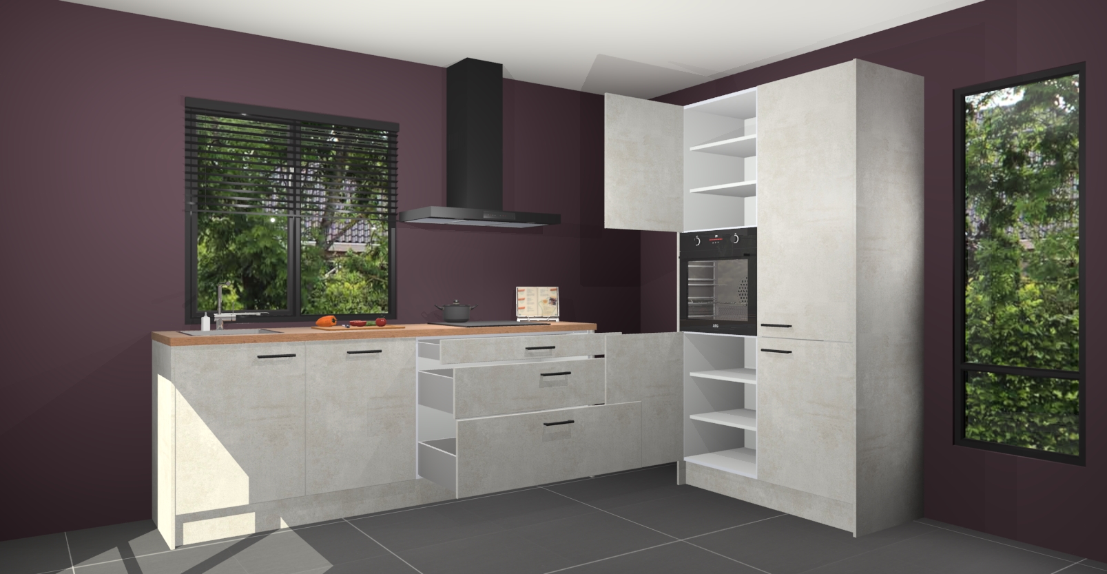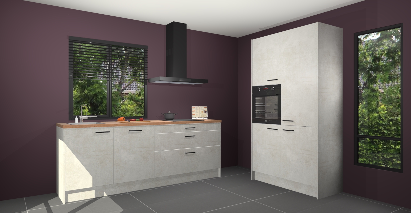 De setting is compleet gemaakt door de vijf inbouwapparaten: wanneer u gaat bestellen kunt u upgraden naar AEG-apparaten als oven, inductieplaat, afzuigkap, vaatwasser en koelkast. Kiest u voor onze Beton opaal keuken Monaco, dan weet u zeker dat u te maken heeft met Duitse kwaliteit. Bovendien is er altijd sprake van een lage prijs en profiteren we aantrekkelijk leveringstermijn: die bedraagt slechts 7 weken ! Om het extra makkelijk te maken worden de keukenkasten reeds voorgemonteerd geleverd.
