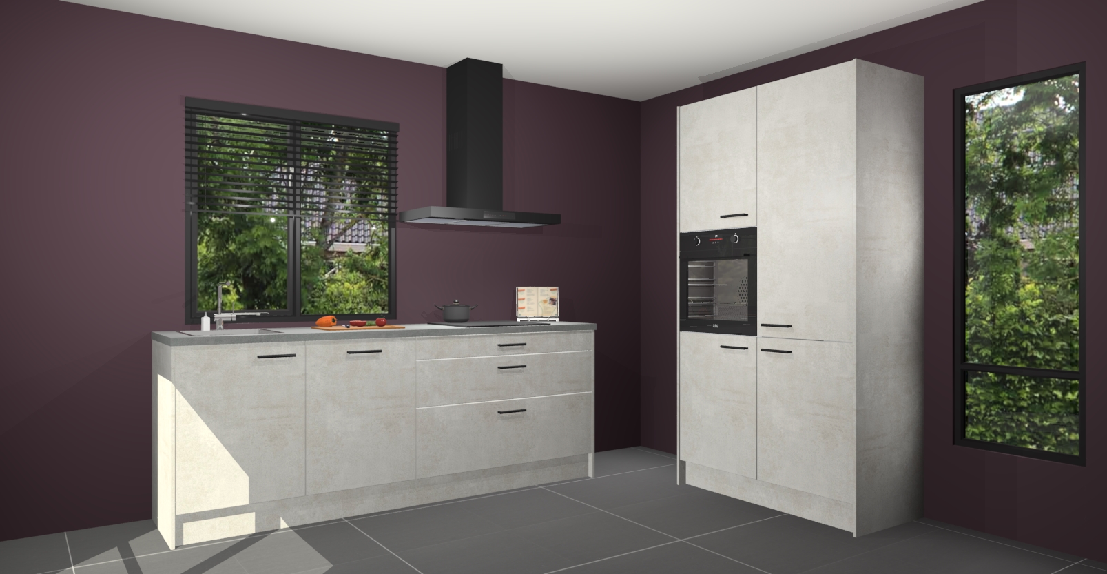 De setting is compleet gemaakt door de vijf inbouwapparaten: wanneer u gaat bestellen kunt u upgraden naar AEG-apparaten als oven, inductieplaat, afzuigkap, vaatwasser en koelkast. Kiest u voor onze Beton opaal keuken Monaco, dan weet u zeker dat u te maken heeft met Duitse kwaliteit. Bovendien is er altijd sprake van een lage prijs en profiteren we aantrekkelijk leveringstermijn: die bedraagt slechts 7 weken ! Om het extra makkelijk te maken worden de keukenkasten reeds voorgemonteerd geleverd.