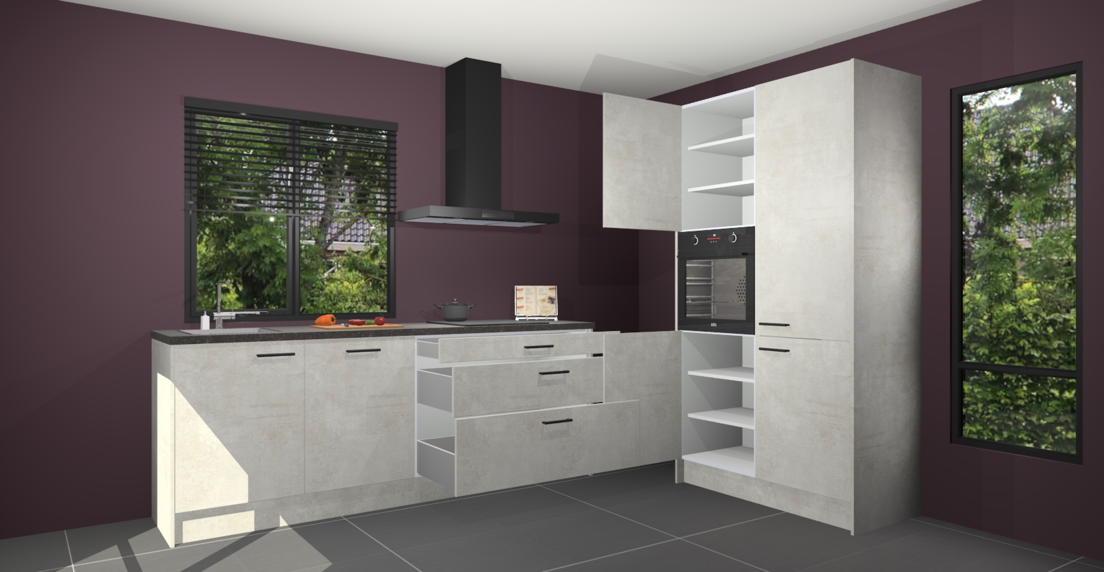 De setting is compleet gemaakt door de vijf inbouwapparaten: wanneer u gaat bestellen kunt u upgraden naar AEG-apparaten als oven, inductieplaat, afzuigkap, vaatwasser en koelkast. Kiest u voor onze Beton opaal keuken Monaco, dan weet u zeker dat u te maken heeft met Duitse kwaliteit. Bovendien is er altijd sprake van een lage prijs en profiteren we aantrekkelijk leveringstermijn: die bedraagt slechts 7 weken ! Om het extra makkelijk te maken worden de keukenkasten reeds voorgemonteerd geleverd.