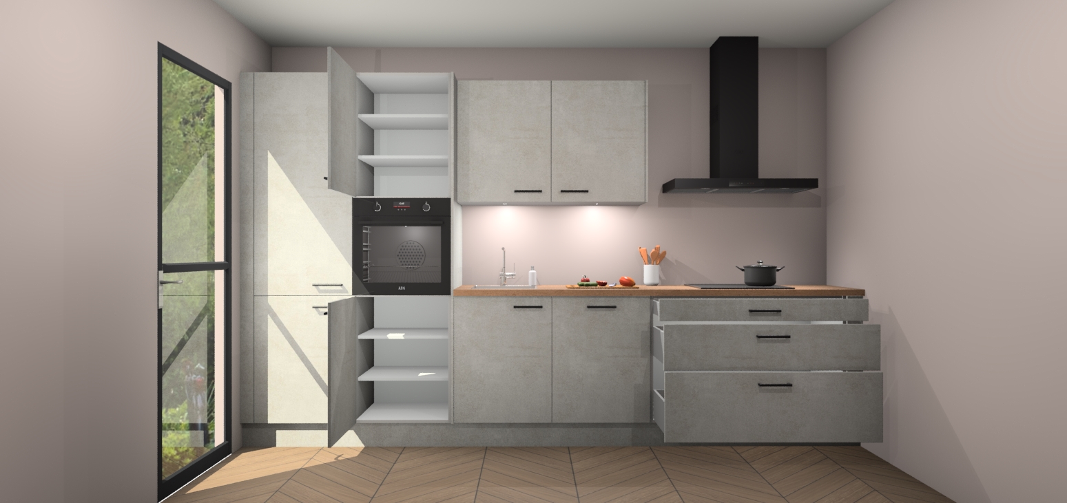 Inclusief plinten, stelpoten en werkblad