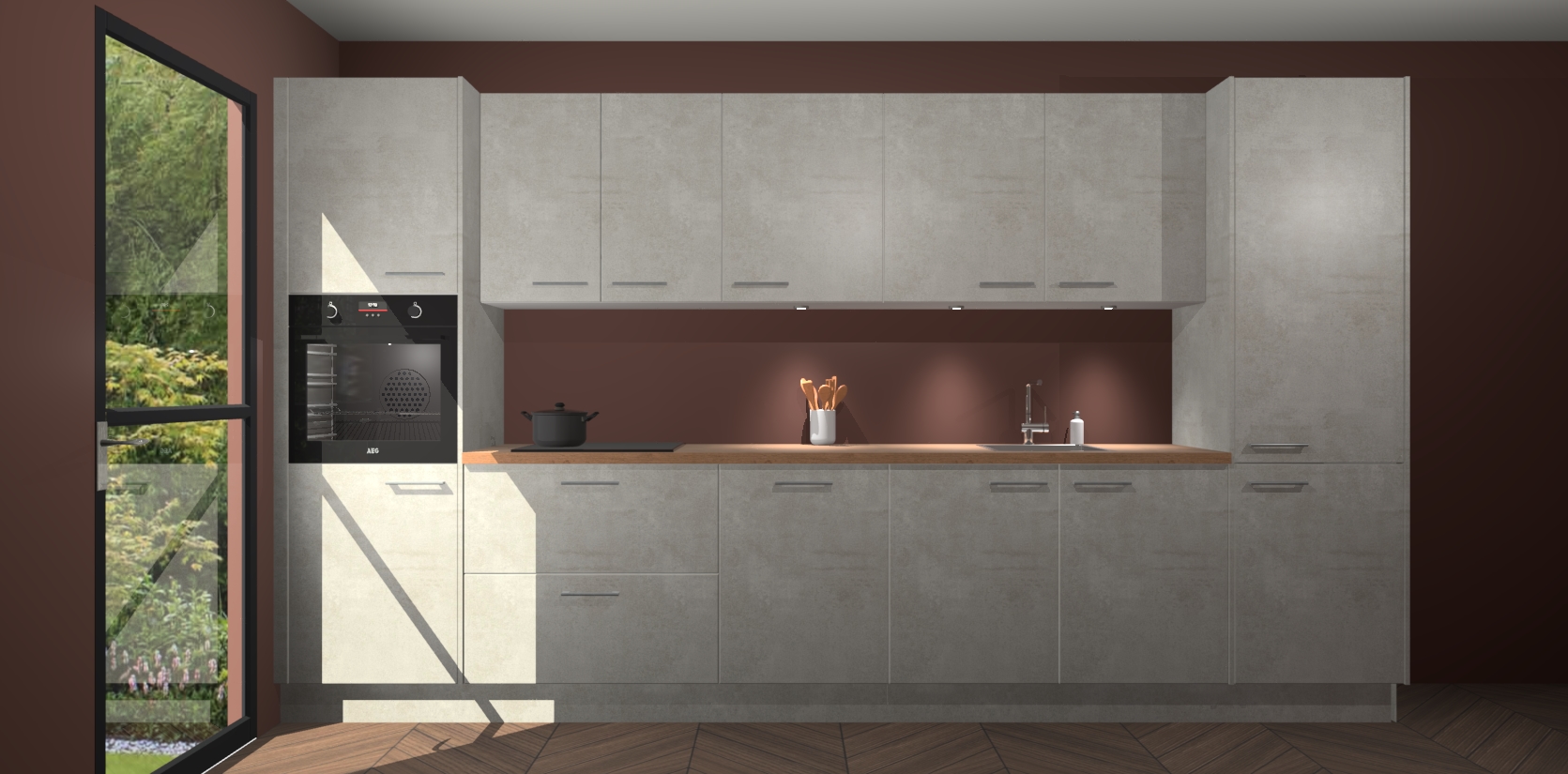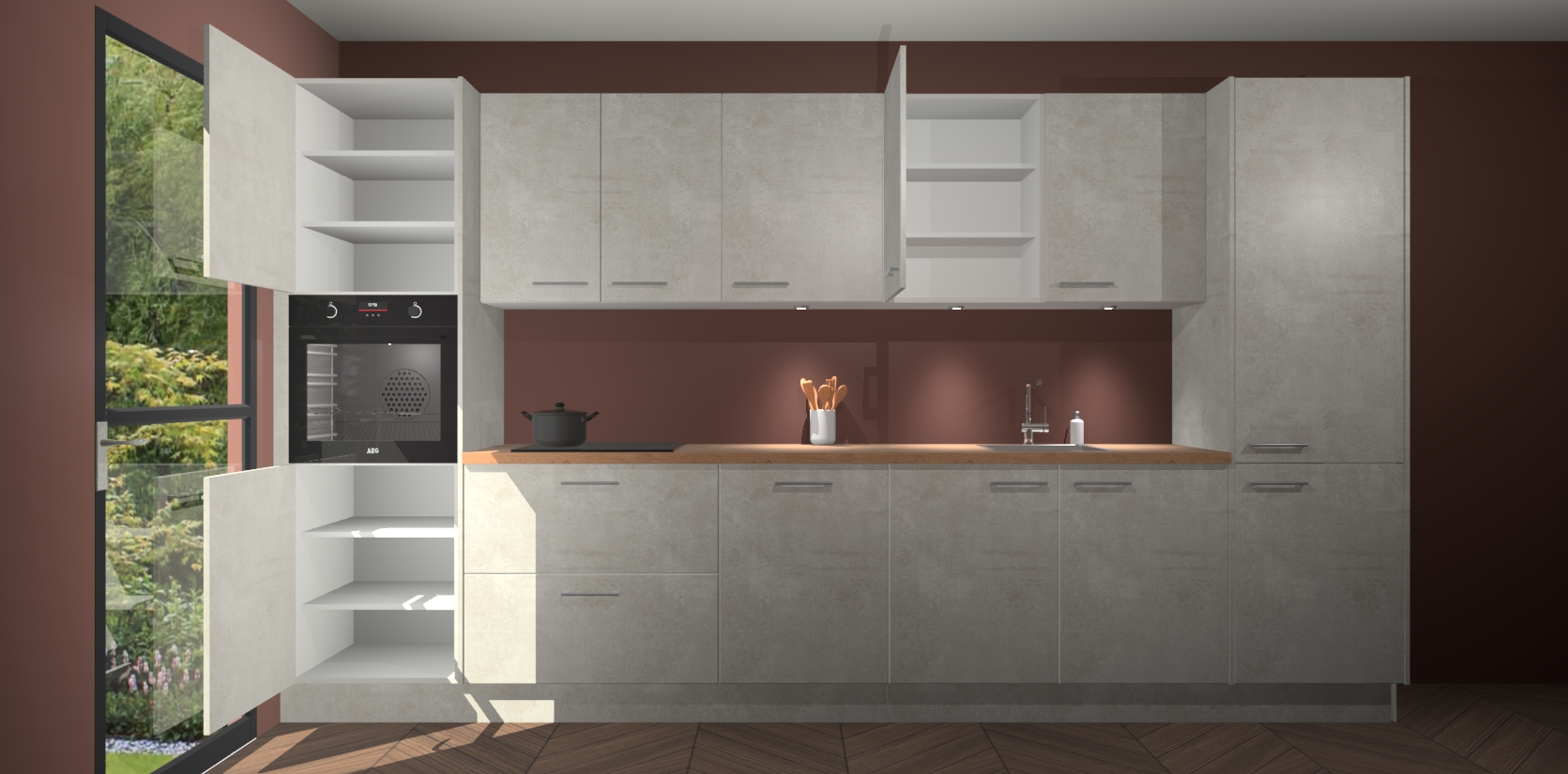 Dit is de perfecte keuken voor wie op zoek is naar een luxueuze stijl zonder zijn portemonnee te legen! Het chique ontwerp van de beton opaal keuken Wels voegt dat vleugje verfijning toe aan elk huis. Het gemak van voorgemonteerde kasten bespaart u talloze uren tijd en energie, zodat u veel sneller dan verwacht kunt beginnen te genieten van uw prachtige nieuwe keuken. Bovendien bedraagt de levertijd slechts 7 weken.