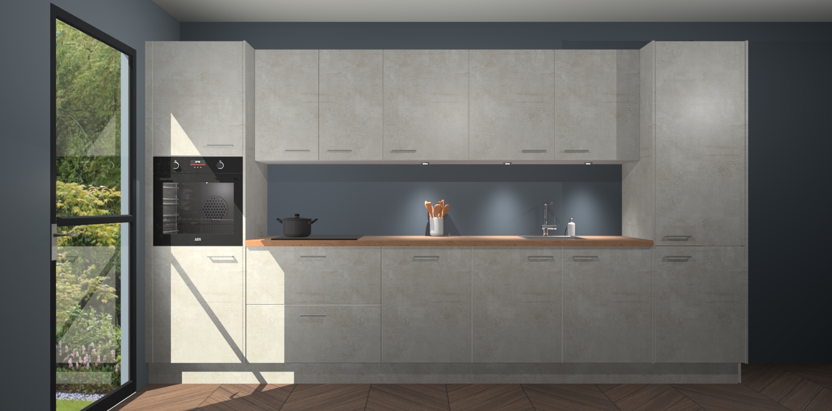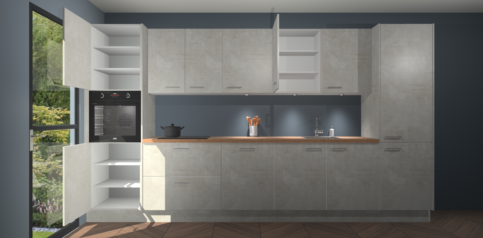Dit is de perfecte keuken voor wie op zoek is naar een luxueuze stijl zonder zijn portemonnee te legen! Het chique ontwerp van de beton opaal keuken Wels voegt dat vleugje verfijning toe aan elk huis. Het gemak van voorgemonteerde kasten bespaart u talloze uren tijd en energie, zodat u veel sneller dan verwacht kunt beginnen te genieten van uw prachtige nieuwe keuken. Bovendien bedraagt de levertijd slechts 7 weken.