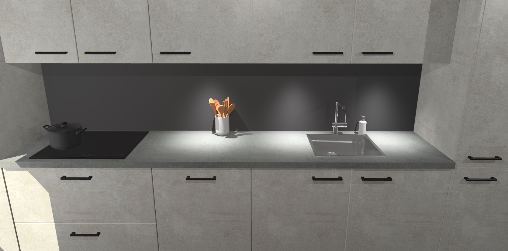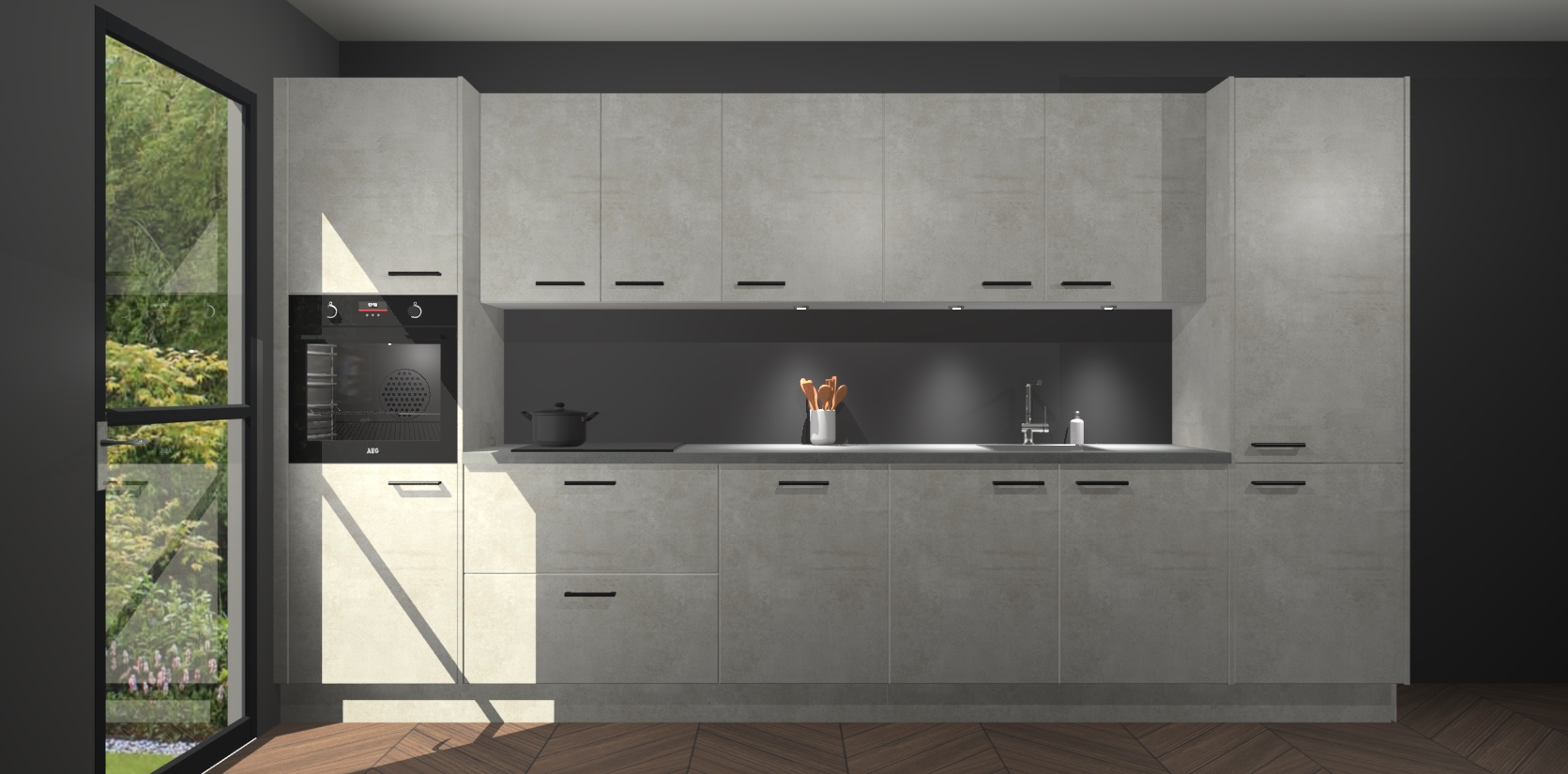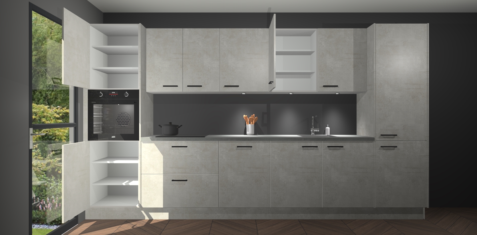 Dit is de perfecte keuken voor wie op zoek is naar een luxueuze stijl zonder zijn portemonnee te legen! Het chique ontwerp van de beton opaal keuken Wels voegt dat vleugje verfijning toe aan elk huis. Het gemak van voorgemonteerde kasten bespaart u talloze uren tijd en energie, zodat u veel sneller dan verwacht kunt beginnen te genieten van uw prachtige nieuwe keuken. Bovendien bedraagt de levertijd slechts 7 weken.