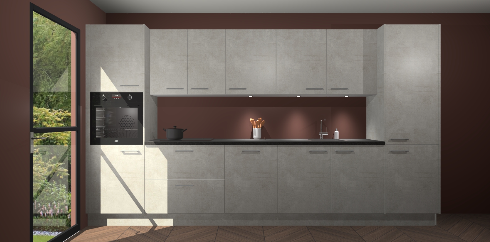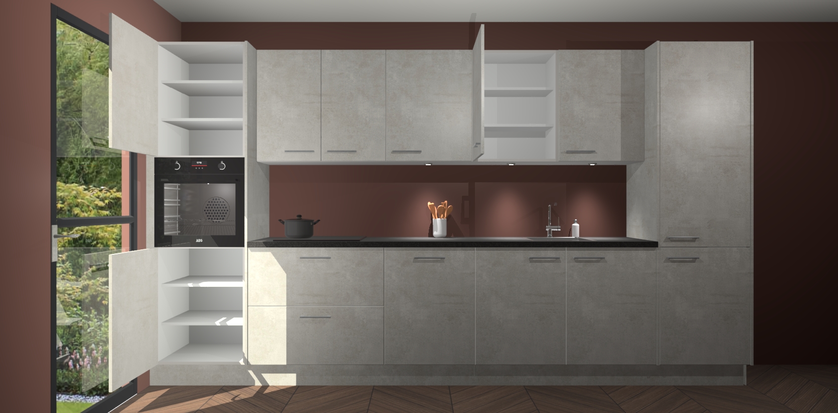 Dit is de perfecte keuken voor wie op zoek is naar een luxueuze stijl zonder zijn portemonnee te legen! Het chique ontwerp van de beton opaal keuken Wels voegt dat vleugje verfijning toe aan elk huis. Het gemak van voorgemonteerde kasten bespaart u talloze uren tijd en energie, zodat u veel sneller dan verwacht kunt beginnen te genieten van uw prachtige nieuwe keuken. Bovendien bedraagt de levertijd slechts 7 weken.