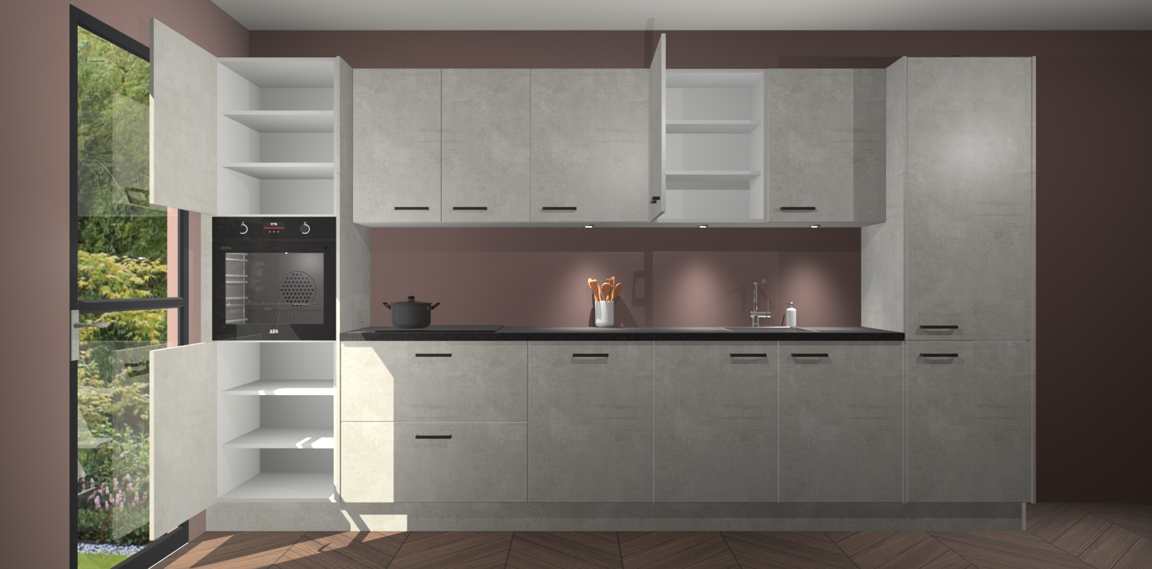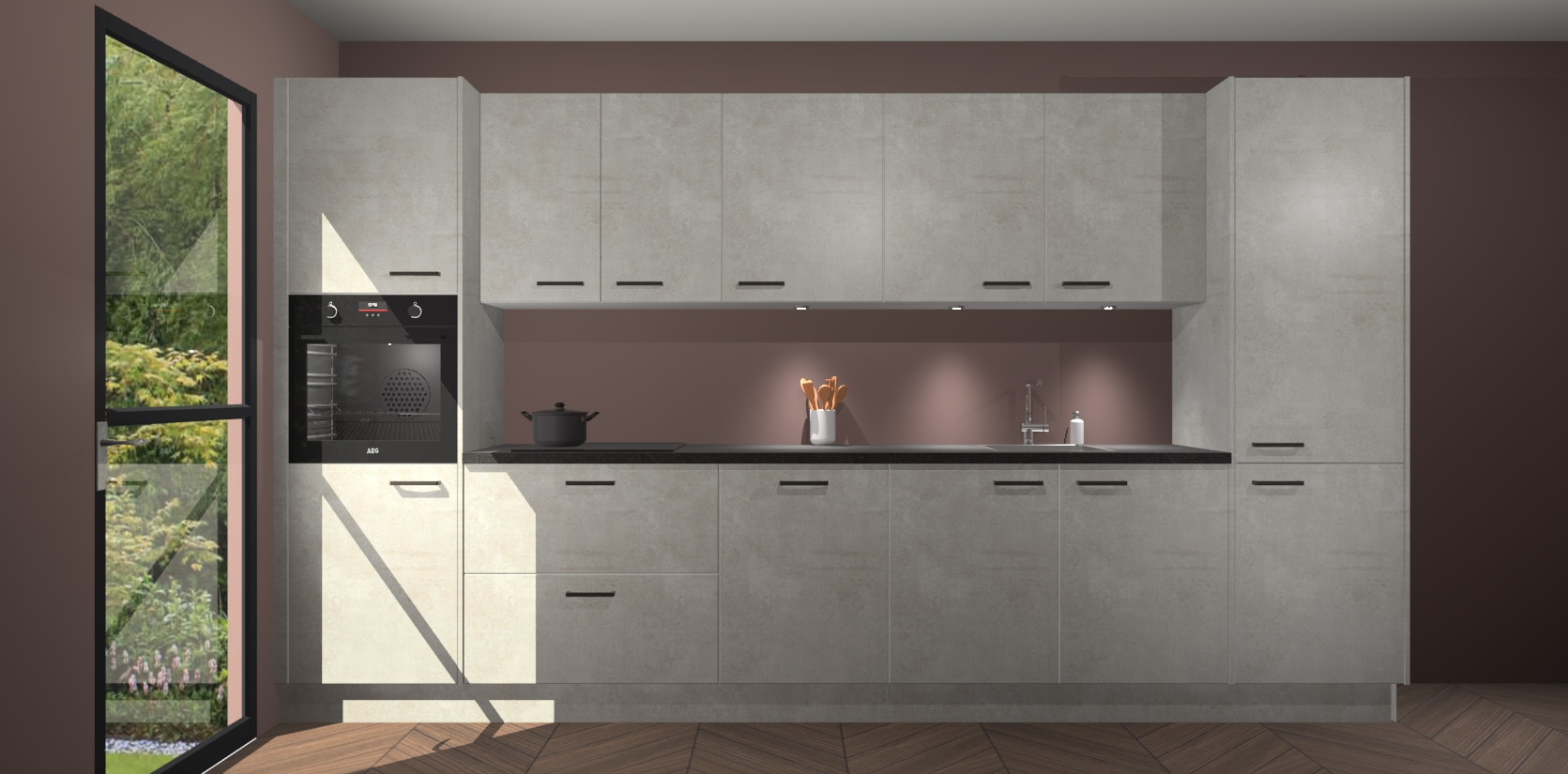 Dit is de perfecte keuken voor wie op zoek is naar een luxueuze stijl zonder zijn portemonnee te legen! Het chique ontwerp van de beton opaal keuken Wels voegt dat vleugje verfijning toe aan elk huis. Het gemak van voorgemonteerde kasten bespaart u talloze uren tijd en energie, zodat u veel sneller dan verwacht kunt beginnen te genieten van uw prachtige nieuwe keuken. Bovendien bedraagt de levertijd slechts 7 weken.