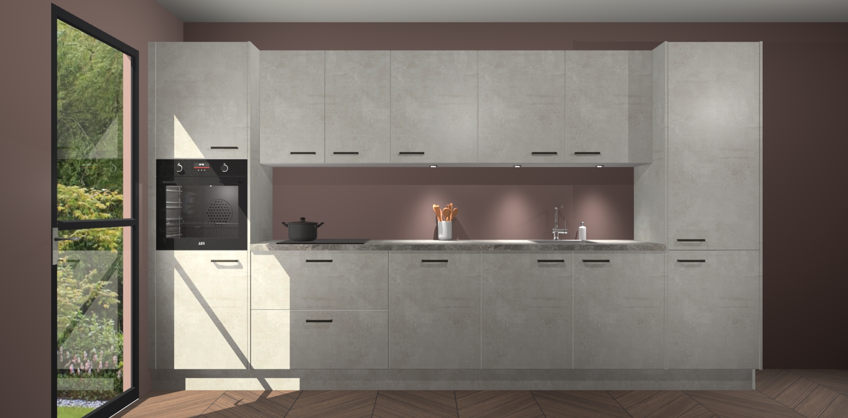 Dit is de perfecte keuken voor wie op zoek is naar een luxueuze stijl zonder zijn portemonnee te legen! Het chique ontwerp van de beton opaal keuken Wels voegt dat vleugje verfijning toe aan elk huis. Het gemak van voorgemonteerde kasten bespaart u talloze uren tijd en energie, zodat u veel sneller dan verwacht kunt beginnen te genieten van uw prachtige nieuwe keuken. Bovendien bedraagt de levertijd slechts 7 weken.